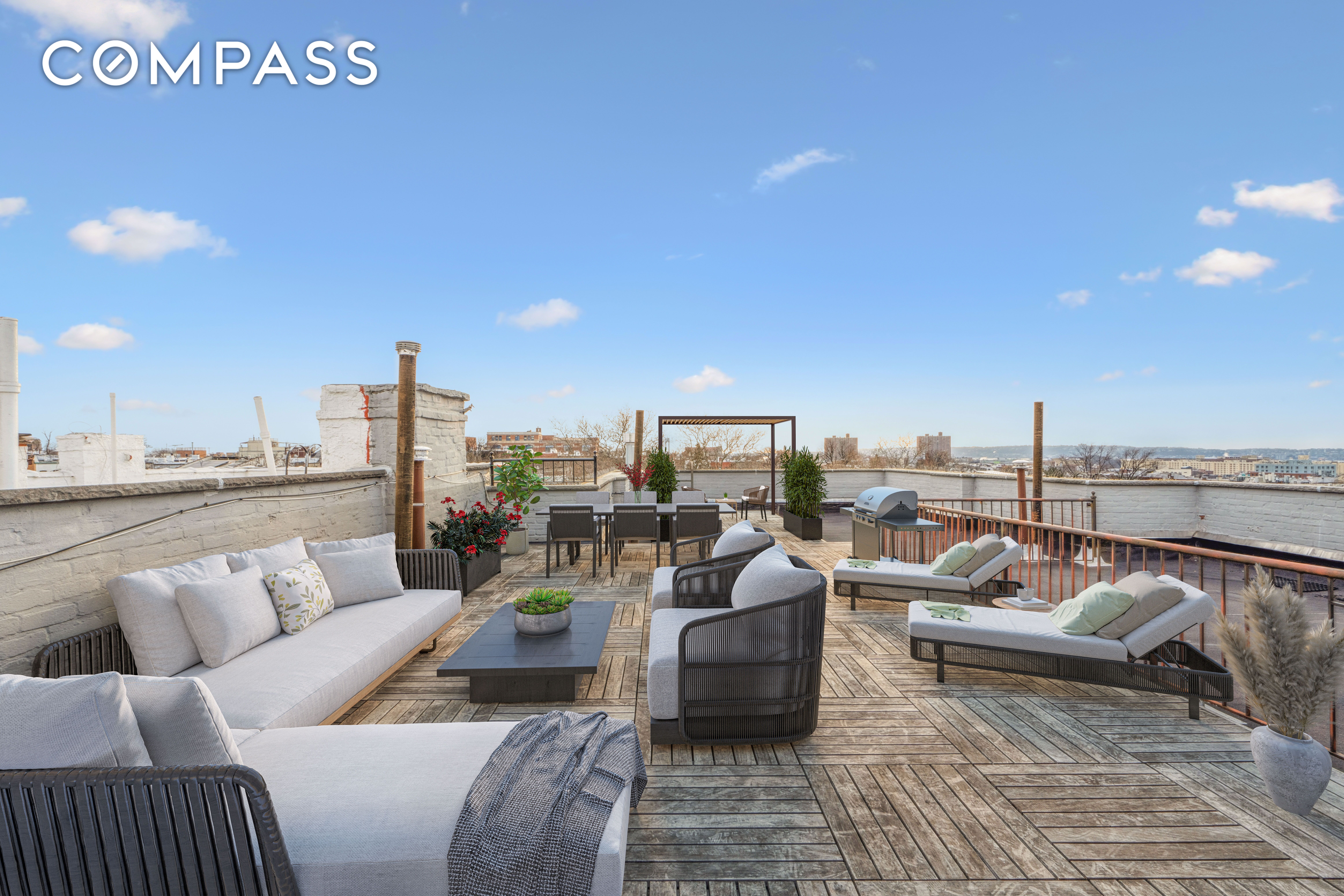 With totally unobstructed city views from the apartment’s dedicated 700 sqft roof area, this bright, renovated, 2 bedroom, 2 bathroom, is spacious and charming . The condo checks off all the boxes -Renovated kitchen with true venting system -Updated bathrooms, with heated towel rack - Modern light fixtures -Exposed brick fireplace feature -Beautiful oak hardwood floors -Central washer and dryer -Extra storage on lower level -Pet friendly -Low Monthly Common Charges Designated rooftop access has 360 views of the city making this a phenomenal outdoor space. Apartment features include video doorbell, beautiful hardwood flooring, fully equipped open kitchen with stainless steel appliances, pristine counter tops, and it’s open concept kitchen lead right into the living dinning room spaces. Exposed brick in the living room has an outlet to add a decorative fire feature. Unit comes with loads of closet space and extra storage on the lower level. Both bathrooms have tub and shower combo. Both bedrooms are south facing and can easily accommodate a queen bed. Premier bedroom has an en-suite bathroom. . Building also has central laundry. Known for it’s spectacular sunsets, Sunset Park is a vibrant community filled with delicious food options from authentic dim-sum, to made-to-order street tacos at the popular taco truck. Amazing views of the New York CIty harbor from the hill on Sunset Park, take advantage of the Sunset Outdoor Pool Recreation Center when in session. The neighborhood is home to both Sahadi’s, the famous food market and to Li-Lac Chocolates. Local shopping accommodate the frugal and the extravagant shopper with shops like ABC Carpet, Restoration Hardware and Design with in Reach, to World Market, and Costco