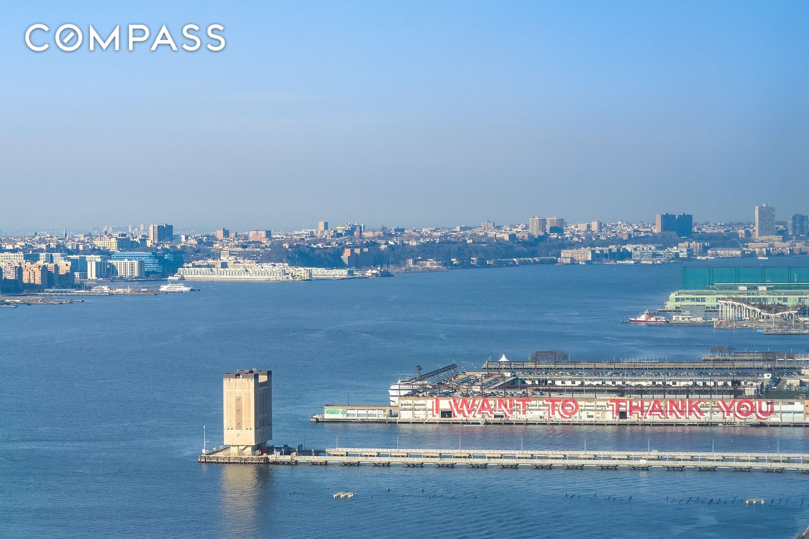 Simply spectacular, uninterrupted river and skyline views to the west and north through dramatic floor-to-ceiling windows bathe the loft-like space in exceptional natural light.