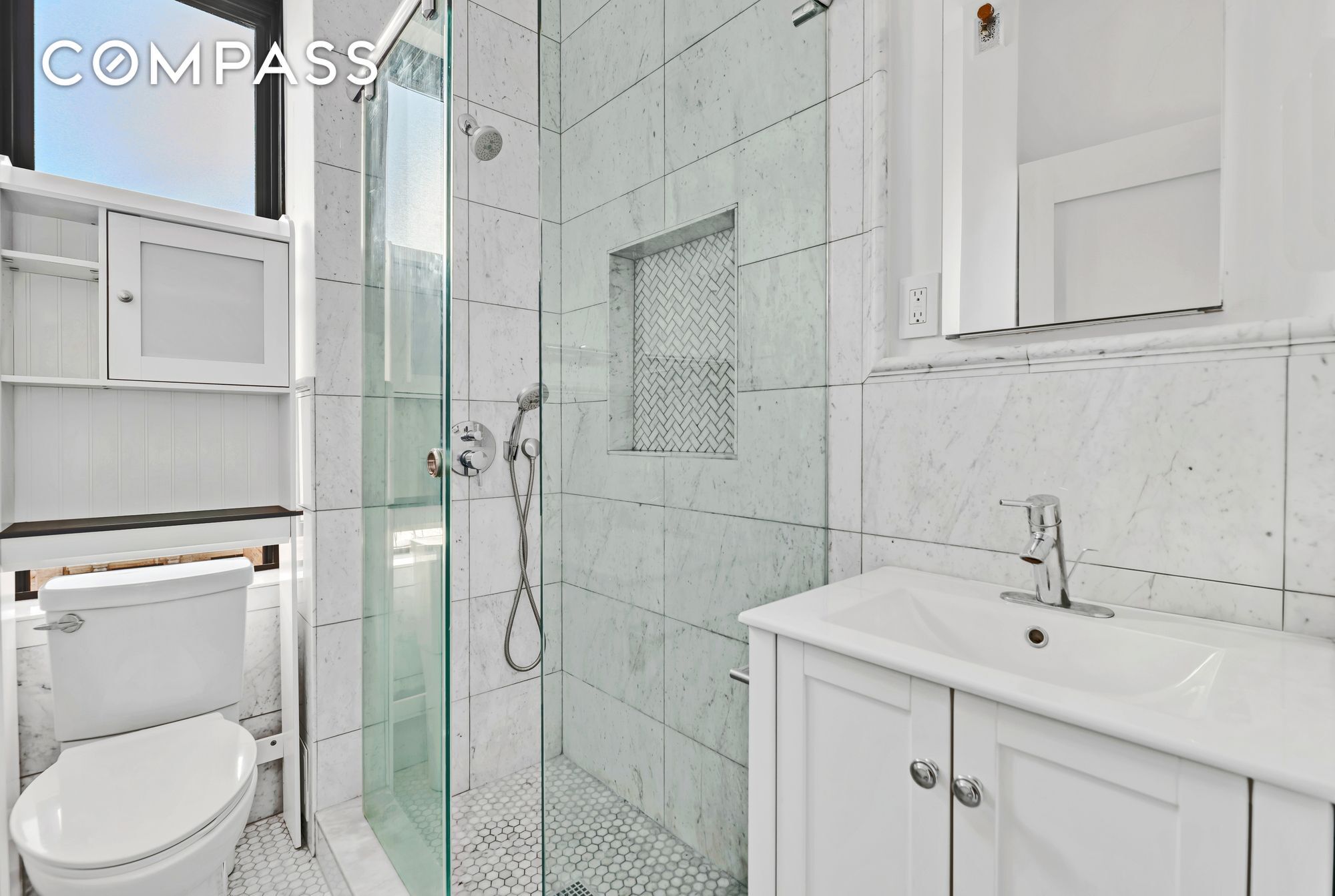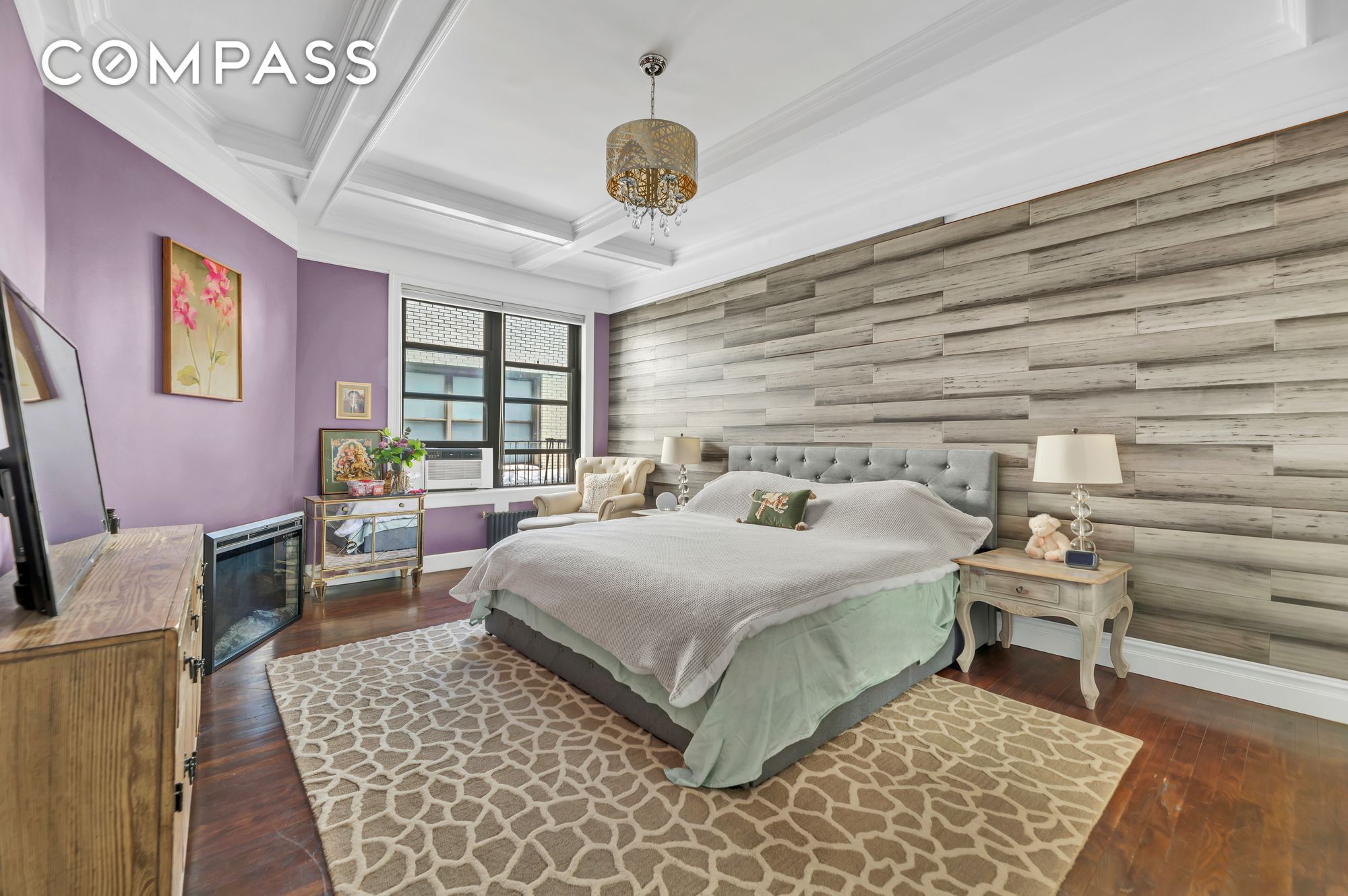 Above ceilings soar to nearly 11 feet, underfoot are handsome hardwood floors, and everywhere you look there is lovely light and just the right amount of early 20th Century detail. The layout of this beautiful heart-warmer offers a flexible lifestyle to anyone who values peace, quiet, sunshine, and easy living. The oversized bedroom is crowned by a coffered ceiling, an absurd amount of closets, and is spacious enough to accommodate a work area, and a lounge area (and maybe a roommate ). The bright kitchen features quartz countertops, subway tiling, white Shaker cabinets, recessed lighting, under cabinet lighting, Bertazzoni refrigerator, stove and dishwasher, and a Haier microwave. The Carrara clad bathroom gives you a step-in shower, beautiful marble basket weave flooring, fixtures by Hansgrohe.