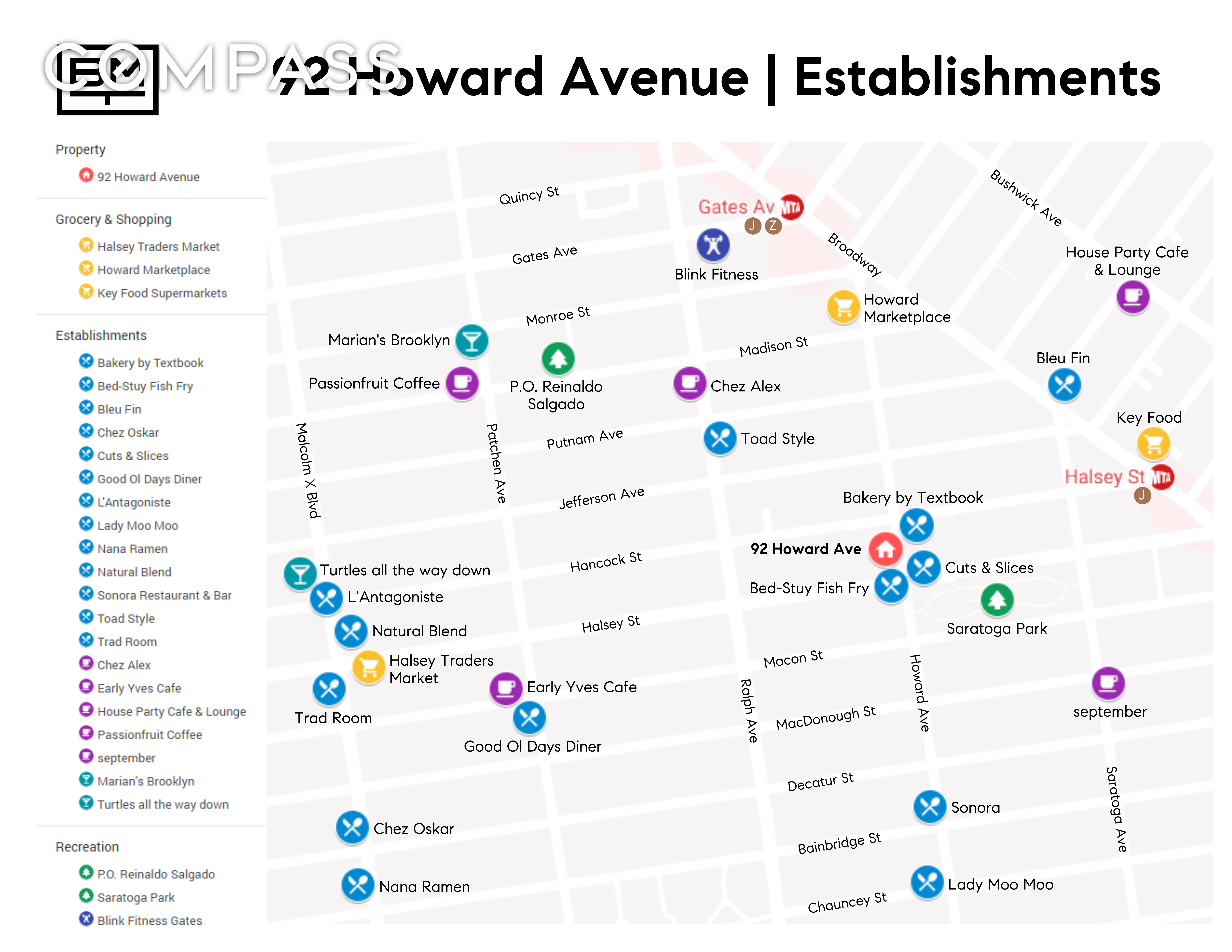 This boutique building is conveniently located near local favorites such as L’Antagoniste, Chez Oskar, Saraghina, All Night Skate and directly opposite Bakery by Textbook and Cuts & Slices. With ample street parking and easy access to public transportation options, including the Halsey J/Z, Ralph C, and Citi Bike stations, convenience is at your doorstep.