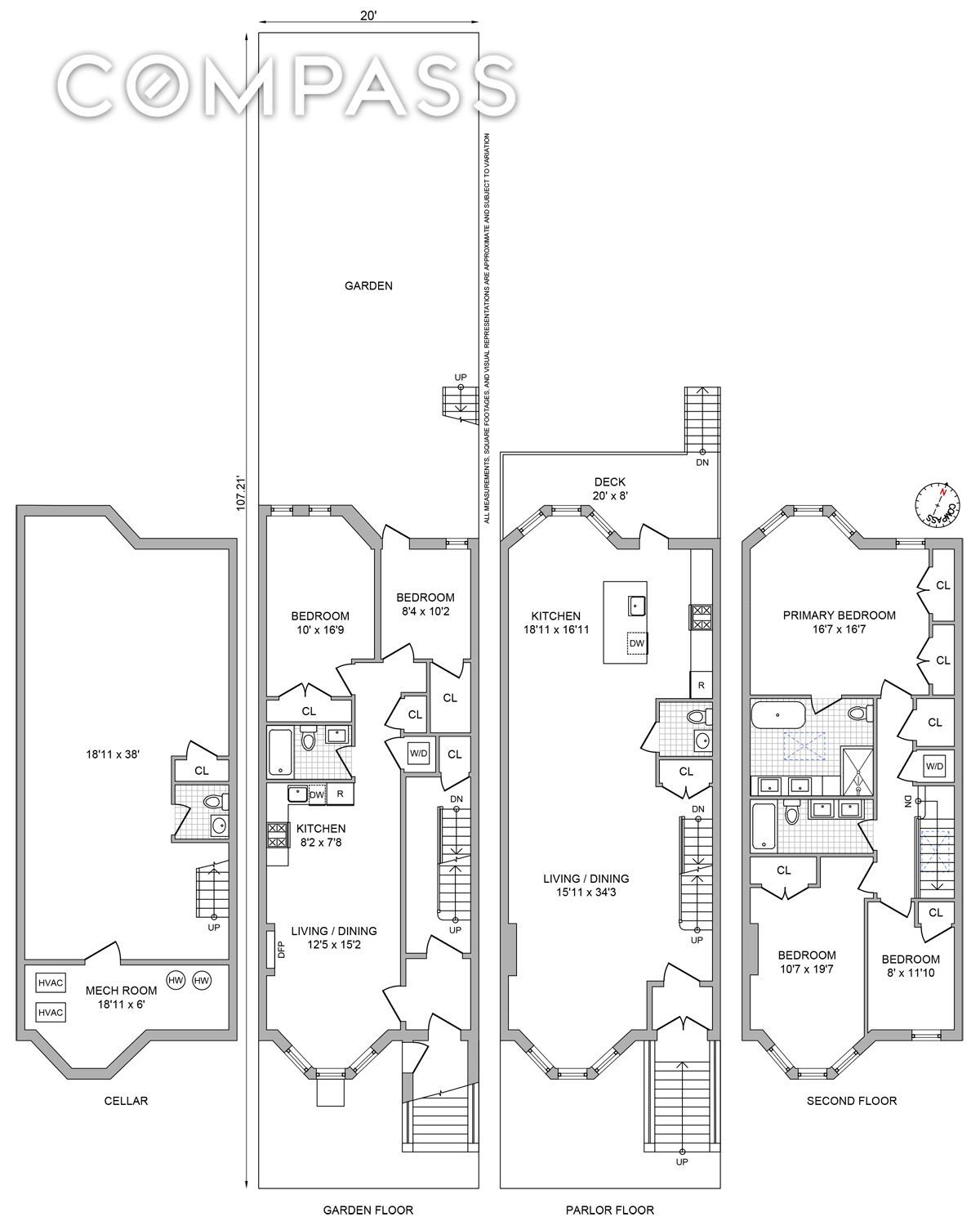 Upstairs, facing the backyard, the primary suite offers a peaceful retreat with large double closets and a spa-like en-suite bathroom. Two additional bedrooms, a second full bathroom with soaking tub, and a convenient laundry closet, complete the top floor. A full-height finished cellar with an additional powder room and closets adds exceptional value and versatility—ideal as a recreation room, gym, storage, office, or all of the above.
