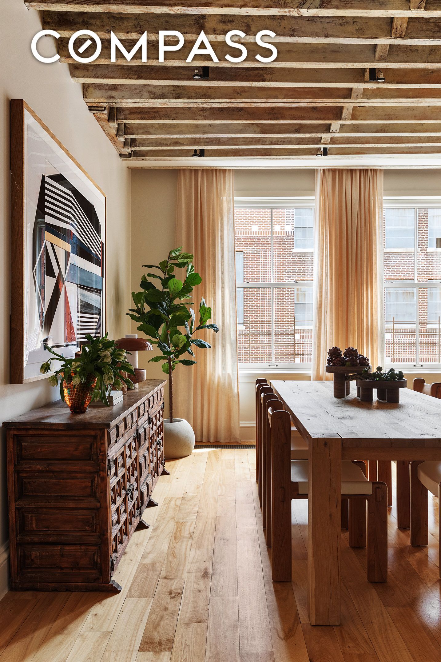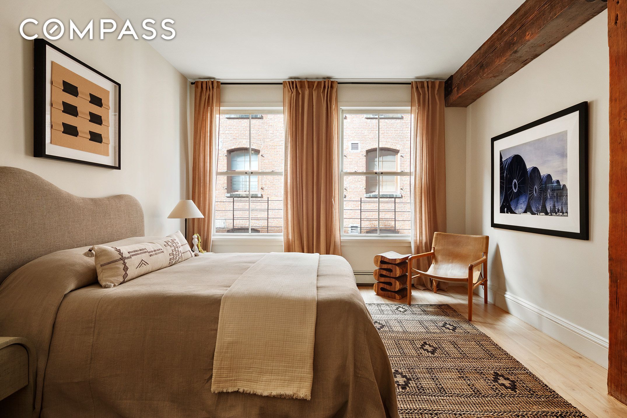 ARCHITECTURAL PROVENANCE 61 North Moore Street, located on one of Tribeca’s most prized cobblestone blocks, is a distinguished example of late 19th-century industrial architecture. Originally built in 1897 as a warehouse supporting the Hudson River trade, the structure embodies the utilitarian loft style of the era, with its red-brick facade and rhythmic window bays. In 2000, the building was meticulously restored and converted into a boutique residential condominium. Today, this seven-story historic condominium comprises just nine residences, offering a rare combination of architectural integrity, privacy, and intimacy in the heart of the Tribeca West Historic District. RESIDENCE HIGHLIGHTS • 4-bedroom, 3-bathroom floor-through duplex that combines the best of loft and townhouse living • Rarely available unit; only second publicly offered resale of a 4 BR duplex loft unit in the building since 2000 • South-facing living room with One World Trade Center views and gas-burning fireplace • Historic double-hung windows, wide-plank hardwood floors, central air conditioning and heating, and custom-designed closets throughout • Pine ceiling beams and wood columns with black cast-iron detailing • Open chef’s kitchen with Varenna cabinetry, Kashmir granite counters, SubZero fridge, six-burner Viking range, double wall ovens, and Miele dishwasher • Walk-in pantry and full-size laundry room with side-by-side washer and vented dryer • Primary suite with private balcony, custom closets, and spa-like limestone bath with double vanity, soaking tub, and glass-enclosed shower • Guest bathroom with Pietra Cardosa black limestone floors and sleek fixtures • Lower level includes a generous lounge/playroom and a full bath with soaking tub; an alternative floor plan is available to expand the lounge area BUILDING FEATURES • Total of 9 residences, offering exceptional privacy and intimacy • Full-time superintendent (on-site) • Newly renovated lobby with virtual doorman video intercom system • Private keyed elevator • Private storage included (5’8” x 12”) LOCATION & LIFESTYLE North Moore Street—once home to warehouses serving the Hudson River trade—is one of Tribeca’s most iconic cobblestone streets, steeped in architectural and cultural history. Named in 1790 for Benjamin Moore, Episcopal bishop and Columbia College president who administered last rites to Alexander Hamilton, the street has long been woven into New York’s historic and artistic tapestry. Decades later, as the downtown art scene began to flourish, it became a cultural incubator, home to the Fluxus movement, with artists like John Lennon and Yoko Ono hosting experimental art events at 18 N. Moore in the 1970s. Its creative spirit continued into the 1980s with artists like Joseph Nechvatal, Jon Hassell, and Bill Viola inhabiting its lofts. Today, North Moore stands as a refined residential enclave—just one block from Hudson River Park and moments from world-class dining, boutiques, and art galleries—offering a perfect blend of historic soul and sophisticated downtown living.