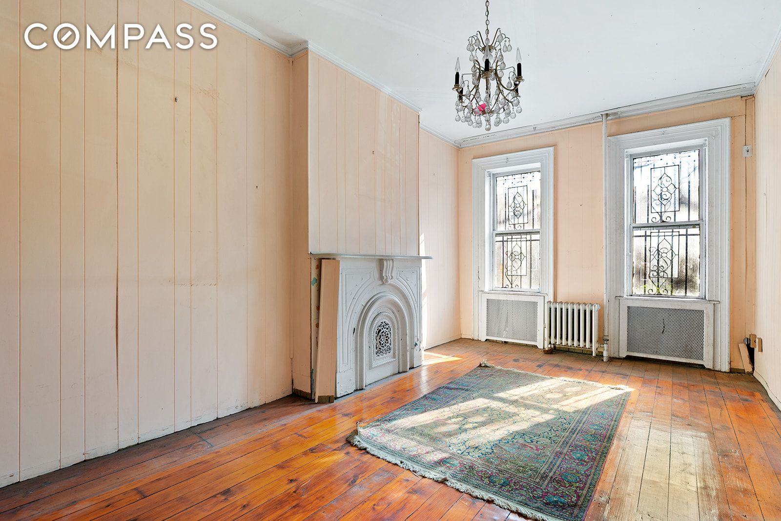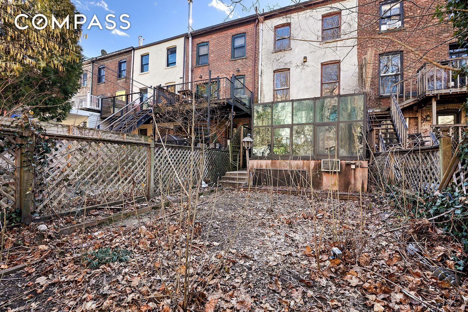 Bring your architect and contractor to this mid-block, 2-family, 3-story townhouse in landmarked Boerum Hill. Built in 1871, this home features a sunny, south-facing living area with original pine floors, decorative mantels, tin ceilings and a quiet and peaceful backyard. An additional greenhouse off the garden-level kitchen was added in the mid 2000's. Full cellar, front courtyard and additional FAR of over 1,500 sq. ft. available for future expansion. (Please confirm independently.)