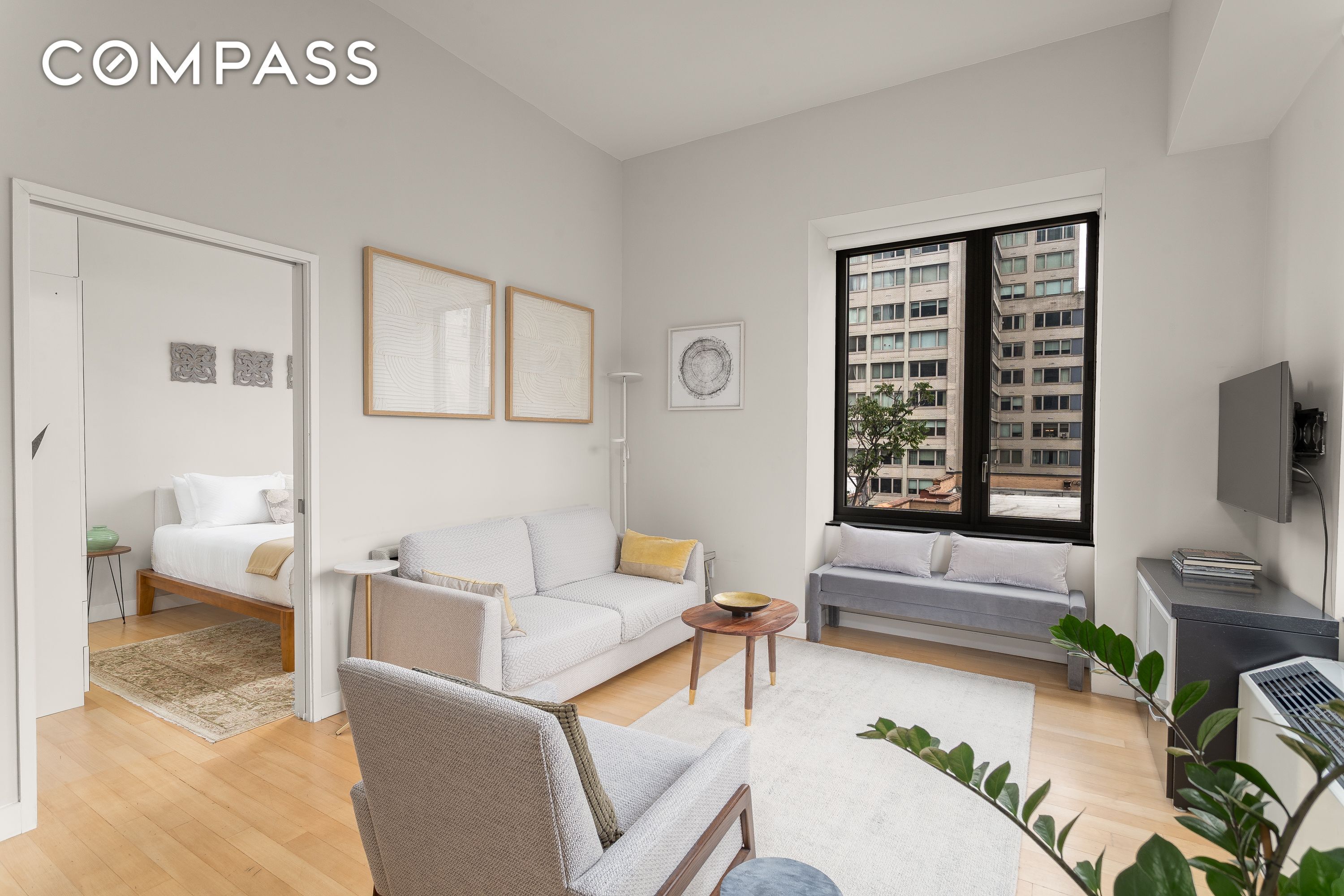 Welcome to luxury living at its finest in the famed Cielo Condominium. This elegant one-bedroom, one-bathroom home is bright and airy with a gracious entry foyer lined with walls of closets. The living room features oversized windows, over 11-foot ceilings, and double exposures facing south and west. The kitchen has a convenient breakfast bar, perfect for casual dining or entertaining guests, with stainless steel appliances, including Sub-Zero and Thermador. Additional features include an in-unit washer/dryer and central AC.