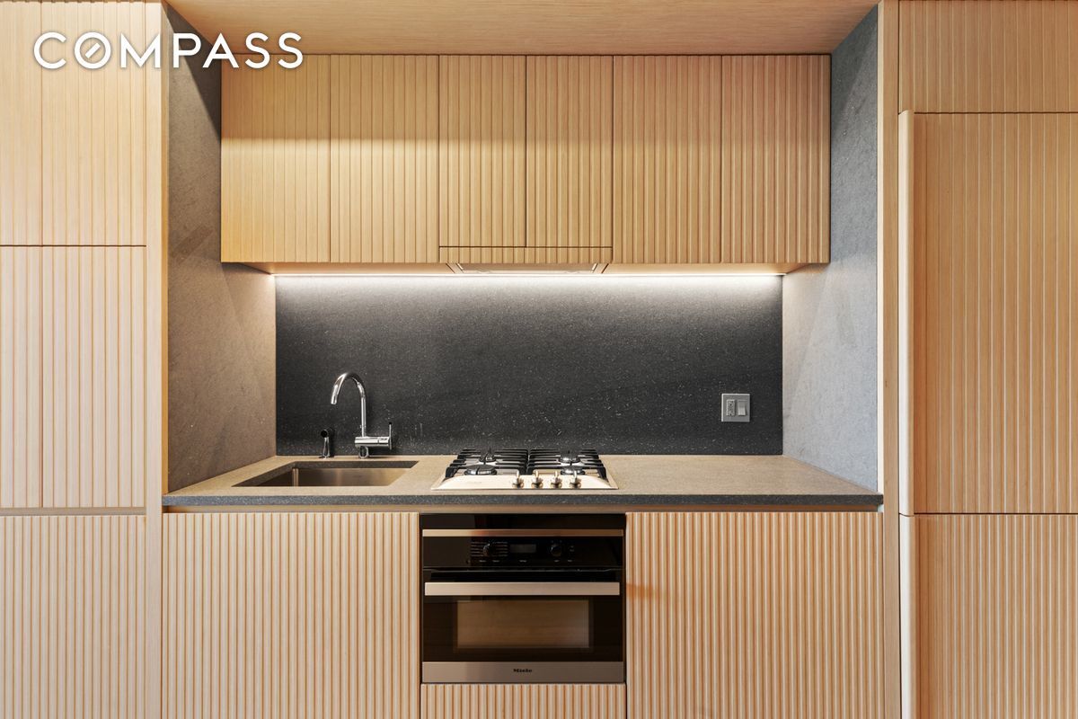 Downtown Luxury Living at its Apex - 565 Broome St. This perfectly laid out studio / 1-bathroom residence features a tranquil southern, courtyard view, 10' ceilings, and pristine 6-inch white oak plank floors throughout. Upon entering the residence, a gracious foyer with dual closets leads to an elegant, custom-designed kitchen with solid fluted white oak cabinets, Balsatina lavastone countertops, and Zucchetti fixtures. Fully integrated, state-of-the-art Miele appliances, including a 24-inch four-burner gas cooktop, speed oven, refrigerator, freezer, and dishwasher. The bathroom features Calacatta marble slab walls and a custom-designed floating white oak vanity. This south-facing residence boasts a sizable living and dining area. The residence is also complete with a washer and dryer, and a multi-zoned heating and air conditioning system. 565 Broome Soho is one of downtown's most elegant condos. Amenities include a 24-hour concierge and attended lobby, automated parking with private driveway and gated entrance, beautifully landscaped outdoor terrace, 55-foot indoor swimming pool, fitness center and spa with sauna and steam rooms, interior landscaped lounge with 92' ceilings, library, and wet bar. Located in the much desired Soho neighborhood, 565 Broome St sits in the heart of downtown's best restaurants, high-end luxury retailers, cafes and entertainment. The building is only a couple of blocks from Hudson River Park with outdoor playgrounds , biking and jogging paths. Beyond this, the building is in close proximity to the 1, C, E trains. Come see this gem today!