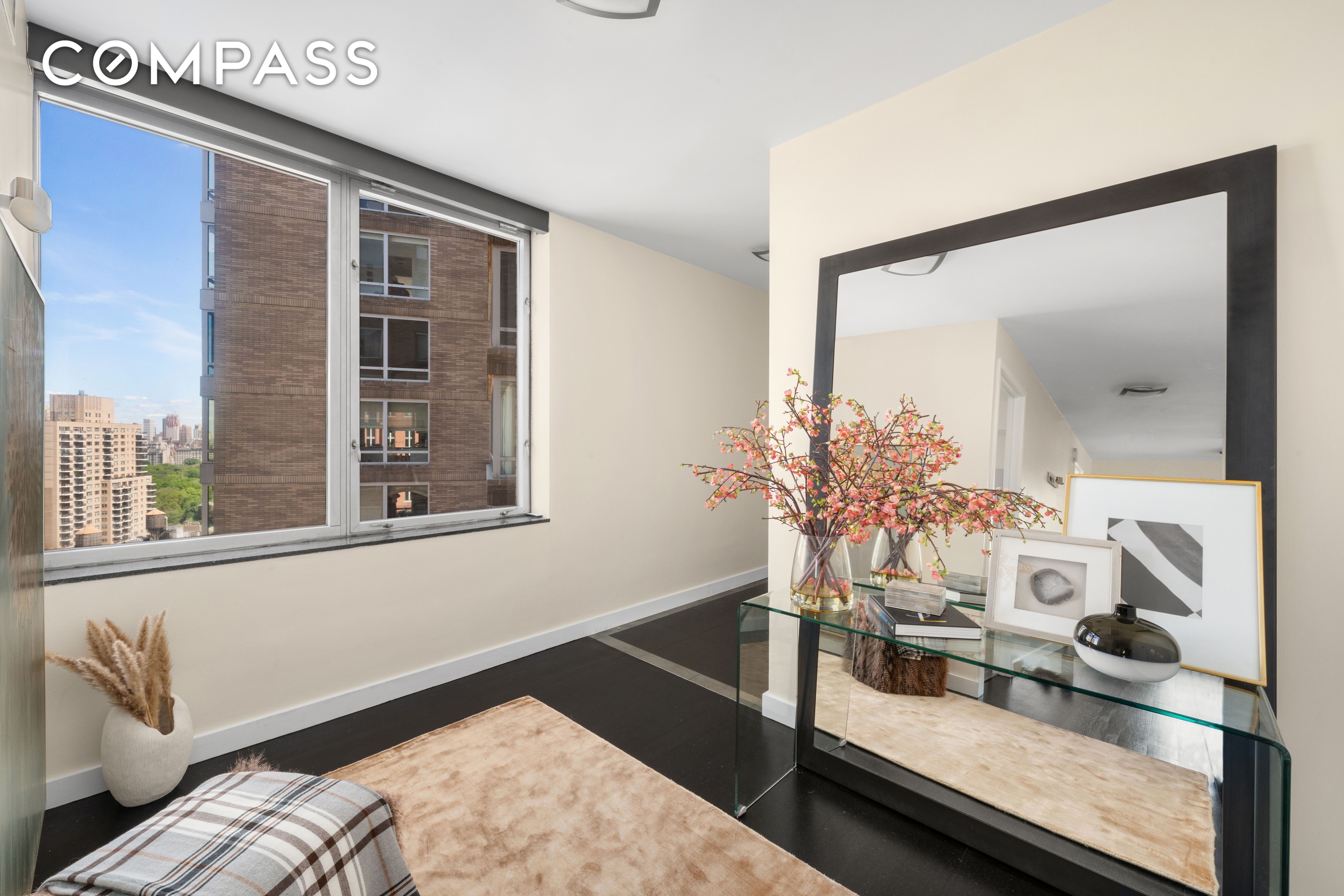 The gracious and private primary suite, with its serene western exposure, features custom-built closets and a luxurious five-fixture en-suite bath. Outfitted with a double vanity, deep soaking tub, and a glass-enclosed shower, the spa-like primary bath evokes relaxation and comfort. The secondary bedroom, positioned to capture northern and eastern views of Central Park, is generously sized for comfort and also features a windowed en-suite bath with modern finishes.