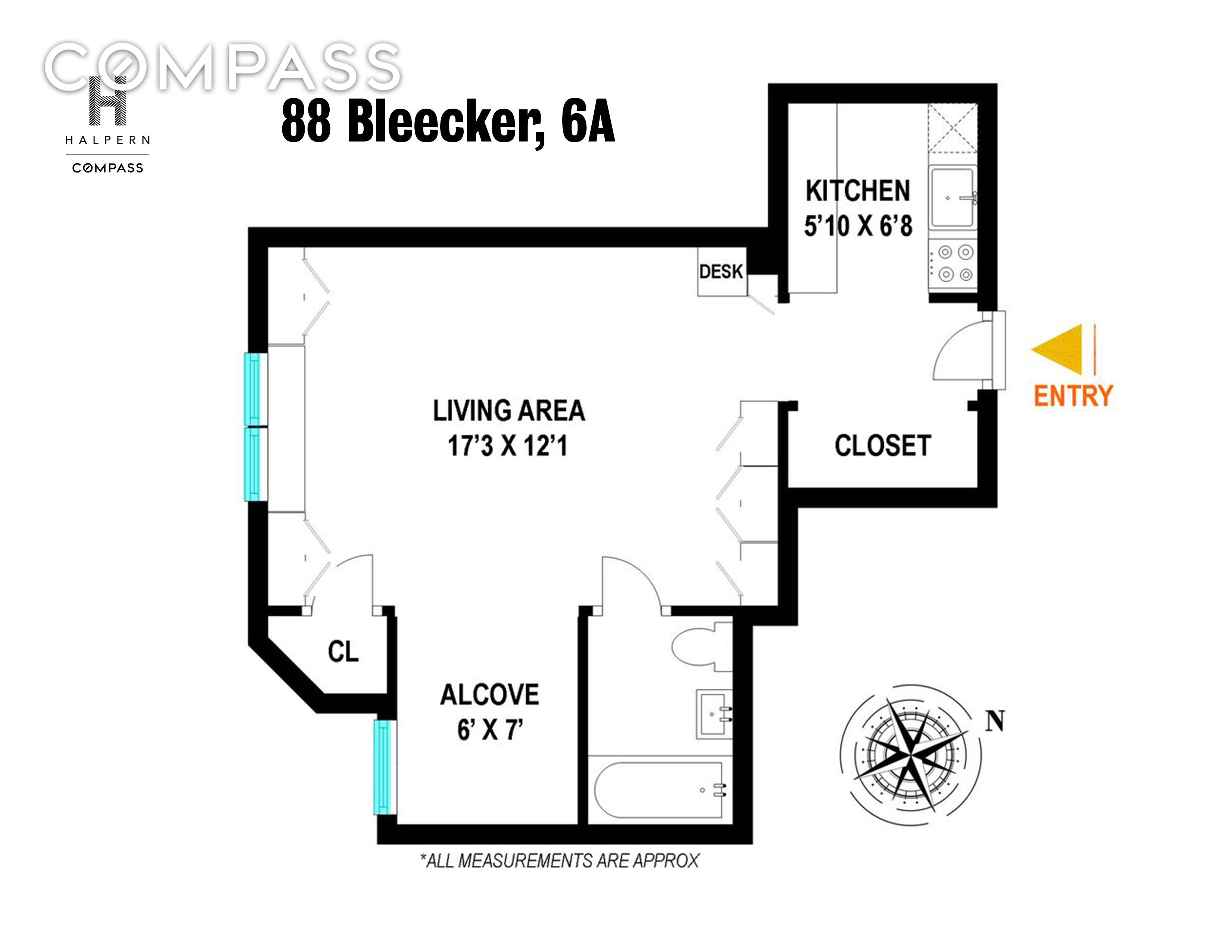 Welcome to Residence 6A, a top-floor penthouse alcove studio at 88 Bleecker Street that nails the balance of space, style, and functionality. Thoughtfully designed and beautifully bright, this home maximizes every inch — with sleek custom built-ins, a roomy entry closet, and a floor-to-ceiling shelving system with hidden drawers for all your city essentials.