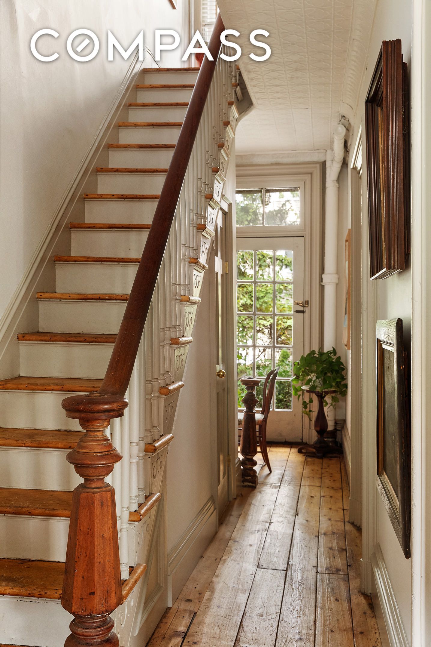 Originally built around 1868 by local builder John W. Ford, this historic wood-frame home in the Greenpoint Historic District evokes the romance of a countryside retreat intertwined with the timeless appeal of a London terraced house. Thoughtfully renewed by a designer-builder couple known for their refined restoration work, every element tells a story—from the preserved tin ceilings and hand-detailed moldings to the layered textures and curated materials that bring a sense of lived-in poetry. The result is a home that feels both rooted in history and effortlessly modern, where every room carries its own quiet narrative.