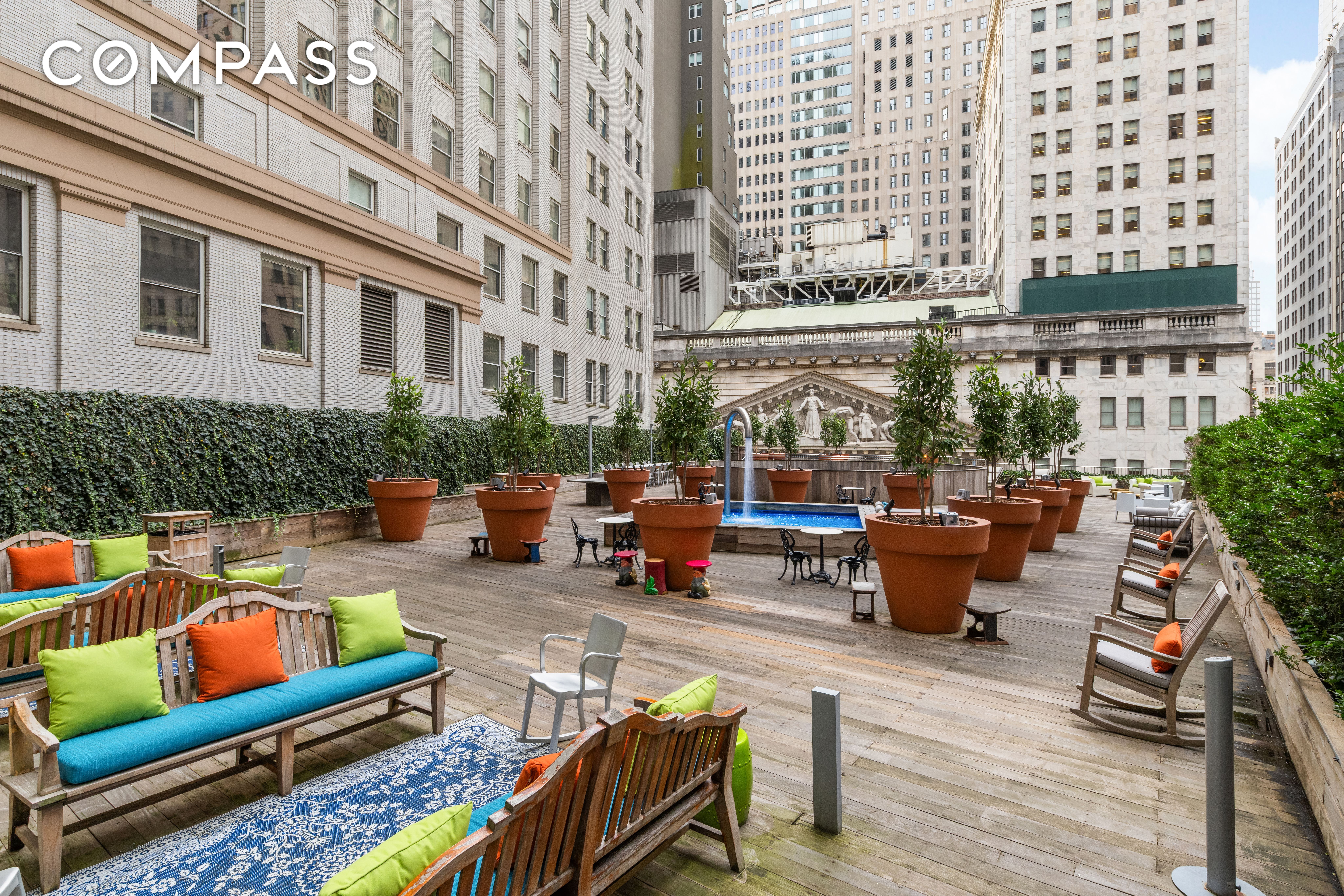Originally the JP Morgan Bank headquarters, 15 Broad Street was reimagined by world-renowned designer Philippe Starck into one of downtown’s most distinctive full-service condominiums. Residents enjoy an extensive suite of amenities, including a 24-hour doorman and concierge, state-of-the-art fitness center with lap pool and hot tub, yoga/ballet studio, basketball court, bowling alley, screening room, sports lounge, children’s playroom, and a beautifully landscaped 5,000-square-foot roof park with city views.