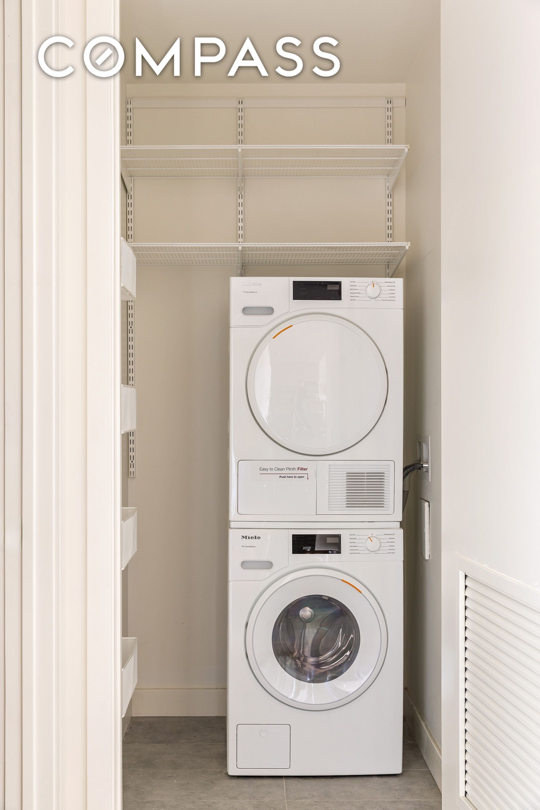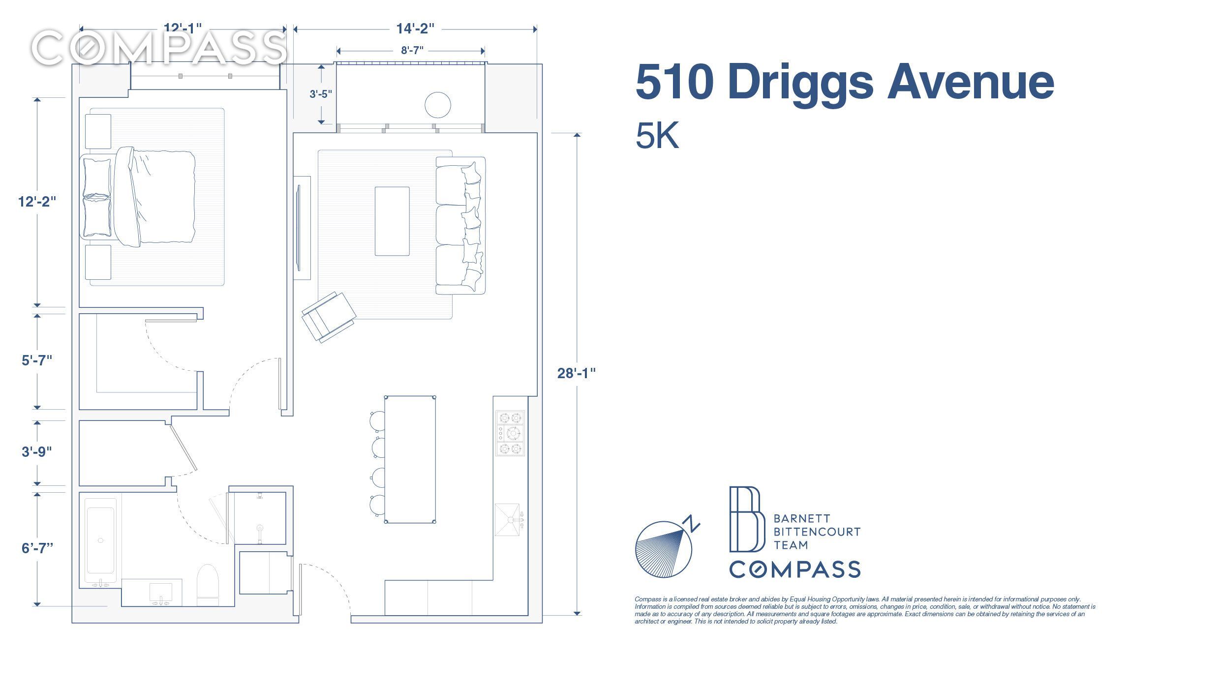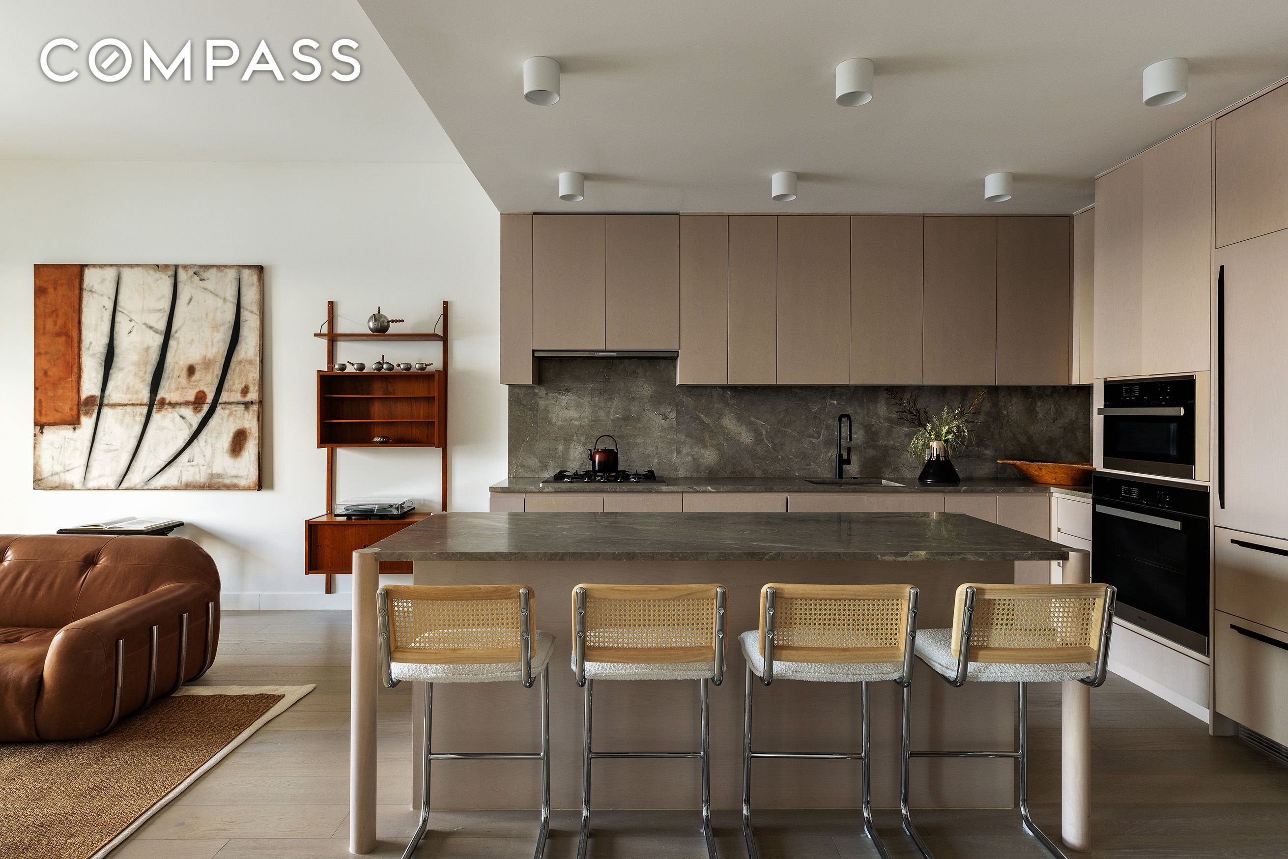 Refined modern living mixed with Brooklyn charm in prime Williamsburg. Welcome home. Residence 5K is a 1 bedroom, 1 bath condo that blends elevated design with effortless comfort in the heart of Williamsburg. The home spans approximately 857 square feet, plus 30 square feet of private outdoor space via a loggia. With north-west exposure, it enjoys excellent sunlight throughout the day, especially beautiful afternoon light through floor-to-ceiling windows. Facing the back of the building, the apartment offers a quiet retreat while still capturing open views across Williamsburg toward the Manhattan skyline. You are immersed in the city, all from the comfort of your own home. We collaborated with Tage Gallery to stage the apartment, showcasing how refined finishes pair beautifully with grounding, thoughtful furnishings. The home features wide-plank European white oak floors, floor-to-ceiling windows, an in-unit washer and dryer, and a private loggia that seamlessly extends the living space outdoors. The apartment opens into a bright, open living and dining area, ideal for both everyday living and entertaining. Oversized windows frame the skyline and enhance the airy proportions of the space. The contemporary kitchen is anchored by a generous island and features honed Grigio Pearl marble countertops that were sealed by TuffSkin for seameless use. The kitchen also includes custom cabinetry, and a fully integrated suite of premium Miele appliances. The island works perfectly as a dining alternative or as additional entertaining space. The bedroom is a serene retreat with room for a king-size bed and a large walk-in closet. The bathroom offers both a shower and a tub, depending on your mood that day, along with a double vanity, Gisele Grey marble floors, Toto fixtures, a glass-enclosed walk-in shower, and a deep soaking tub. On top of it all, the apartment includes a deeded storage unit that transfers with the home. Developed by Northlink Capital and designed by internationally acclaimed architecture and design firm Woods Bagot, 510 Driggs Avenue delivers boutique new development living with a full suite of amenities. Residents enjoy a landscaped rooftop terrace with grilling stations, a tranquil courtyard, a children’s play area, a resident lounge with co-working space and coffee bar, and a fully equipped fitness center. The attended lobby features warm, organic finishes, cold storage for deliveries, and access to private parking and storage. On the ground floor, the building is home to Barry’s Bootcamp, Impact Kitchen, and Prespire, a sauna studio. At its core, 510 Driggs Avenue is designed for today’s Williamsburg buyer. This is the only new development located directly off the Bedford Avenue L stop, widely considered prime Williamsburg. You can reach Manhattan or the rest of Brooklyn in under five minutes. Please inquire about our Neighborhood Guide so we can share our favorite restaurants, bars, gyms, and recreational spaces nearby.