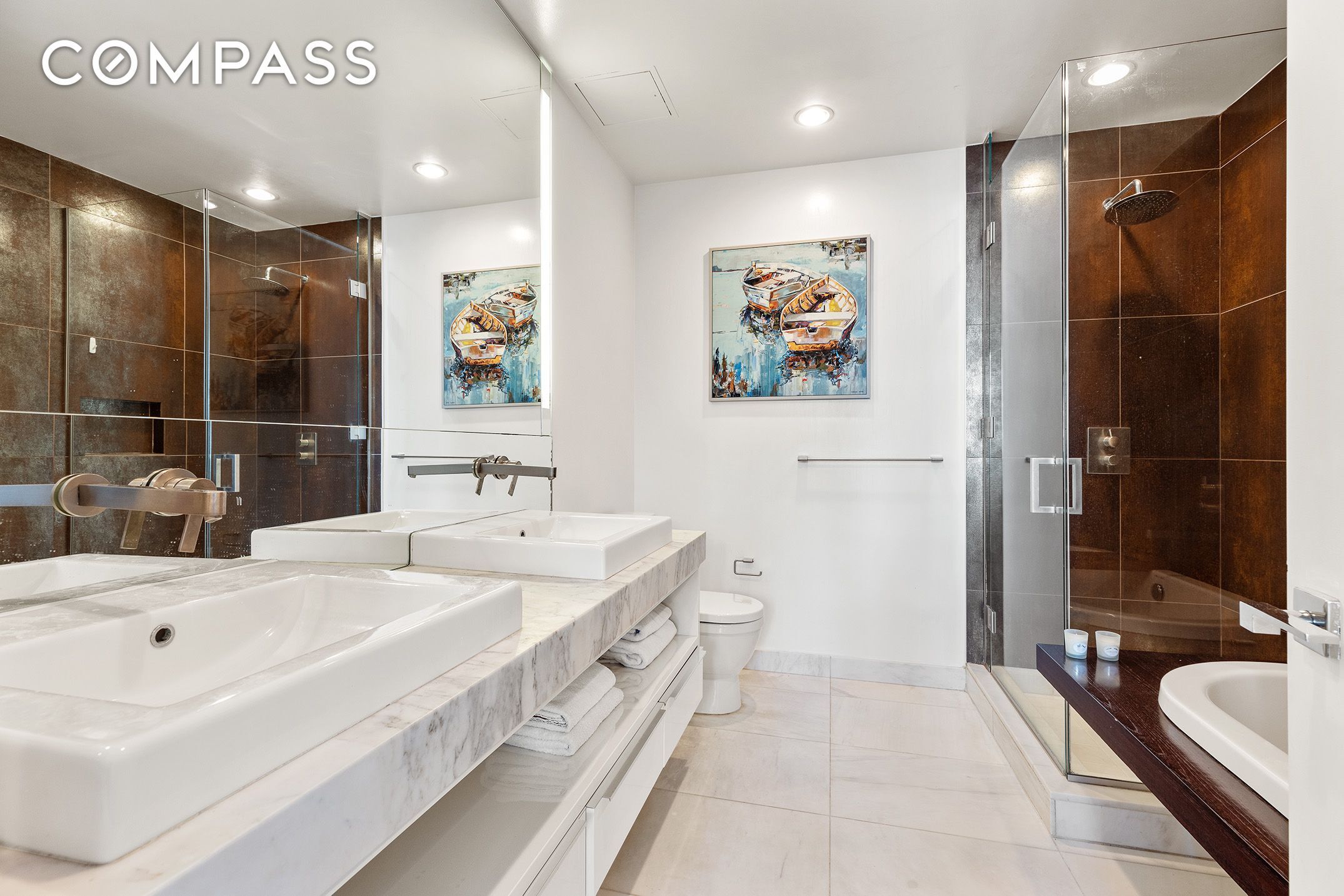 Finally, the two bedroom / two bathroom downtown condominium you have been waiting for! Unit 8G is a special home located at 133 West 22nd Street, one of Chelsea’s most premiere, boutique and full-service buildings. As you enter unit 8G you will immediately feel the airiness and scale of this grand floor plan. With dark walnut flooring throughout and floor-to-ceiling windows, the spacious living/dining room is sure to impress. Off of the living room is your own private balcony. North facing and extremely quiet, this is a lovely place to enjoy a glass of wine or your morning coffee. The kitchen is large with a complete appliance package; paneled Liebherr refrigerator, Bosch dishwasher and range, built-in wine fridge and hidden microwave. Excellent storage and top-of-the-line appliances make this kitchen a true chef’s oasis and with a sizable breakfast bar, it is perfect for entertaining. What makes this unit particularly special are the substantial bedrooms. Each bedroom easily fits a king size bed and the split layout offers privacy and separation. The primary bedroom is flooded with morning sunlight, features a walk-in closet and offers a stunning ensuite bathroom. This spa level bathroom has a separate stall shower, deep soaking tub, and double vanity, a primary bathroom that checks all of the boxes. Additional features include central heating and air conditioning, high ceilings, your own in unit washer/dryer and large private storage in the basement. 133 West 22nd Street offers 24 hour doorman, live-in super, attached parking garage, incredible roof deck with grills and wet bar and a top-of-the-line gym with views onto the outdoor pool. With only 99 units, the building is intimate yet offers the best of the best in terms of services and amenities. Located around the corner from the F, M, and 1 trains you can get anywhere in the city in minutes and with Trader Joes, Whole Foods, Fairway and Westside market minutes away you have access to the best the city has to offer. Unit 8G will not disappoint. We invite you to come tour today! *Listed taxes assumes primary residence and STARS abatement