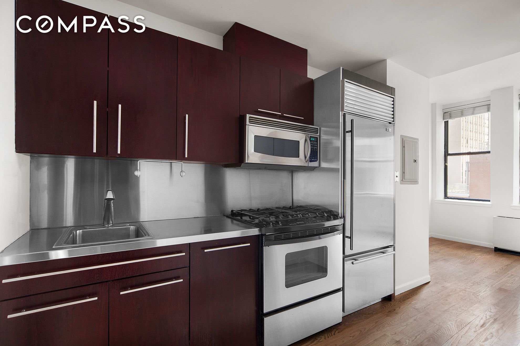 Rich in history and high on design, 150 Nassau is the Financial District’s most desirable boutique condominium building. Now available on the 6th floor, is this light filled, east facing studio apartment. High ceilings and three oversize windows offer a wonderful sense of volume. Good storage, hardwood flooring, and a kitchen with full scale appliances add to the overall appeal and function of this space. Laundry rooms are located on each floor.