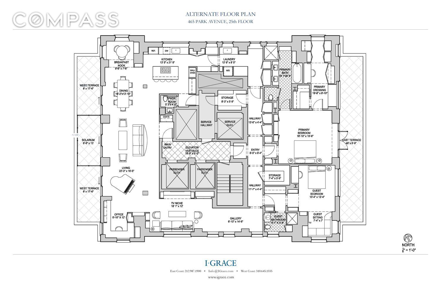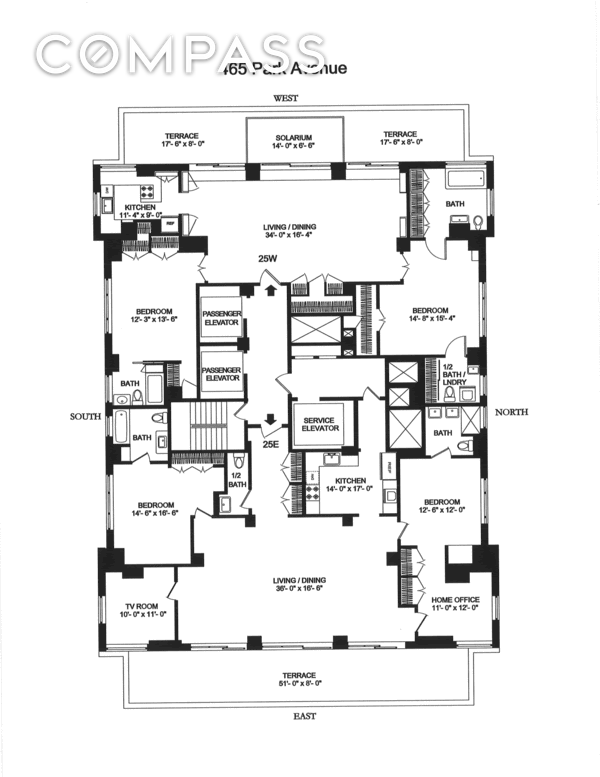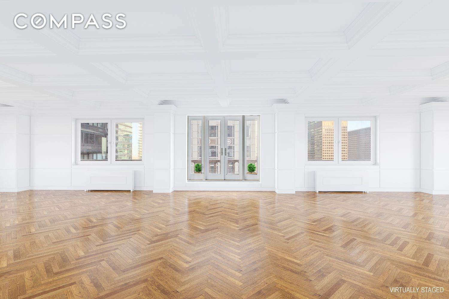 This sun-drenched home features north, south, east, west exposures, 2 private terraces totaling approximately 688 square feet of exterior space, and a private elevator landing. The residence can be reimagined in a variety of layouts to suit one’s specifications and desires. The space allows for a configuration of 3 generously proportioned bedrooms and up to 4.5 bathrooms.