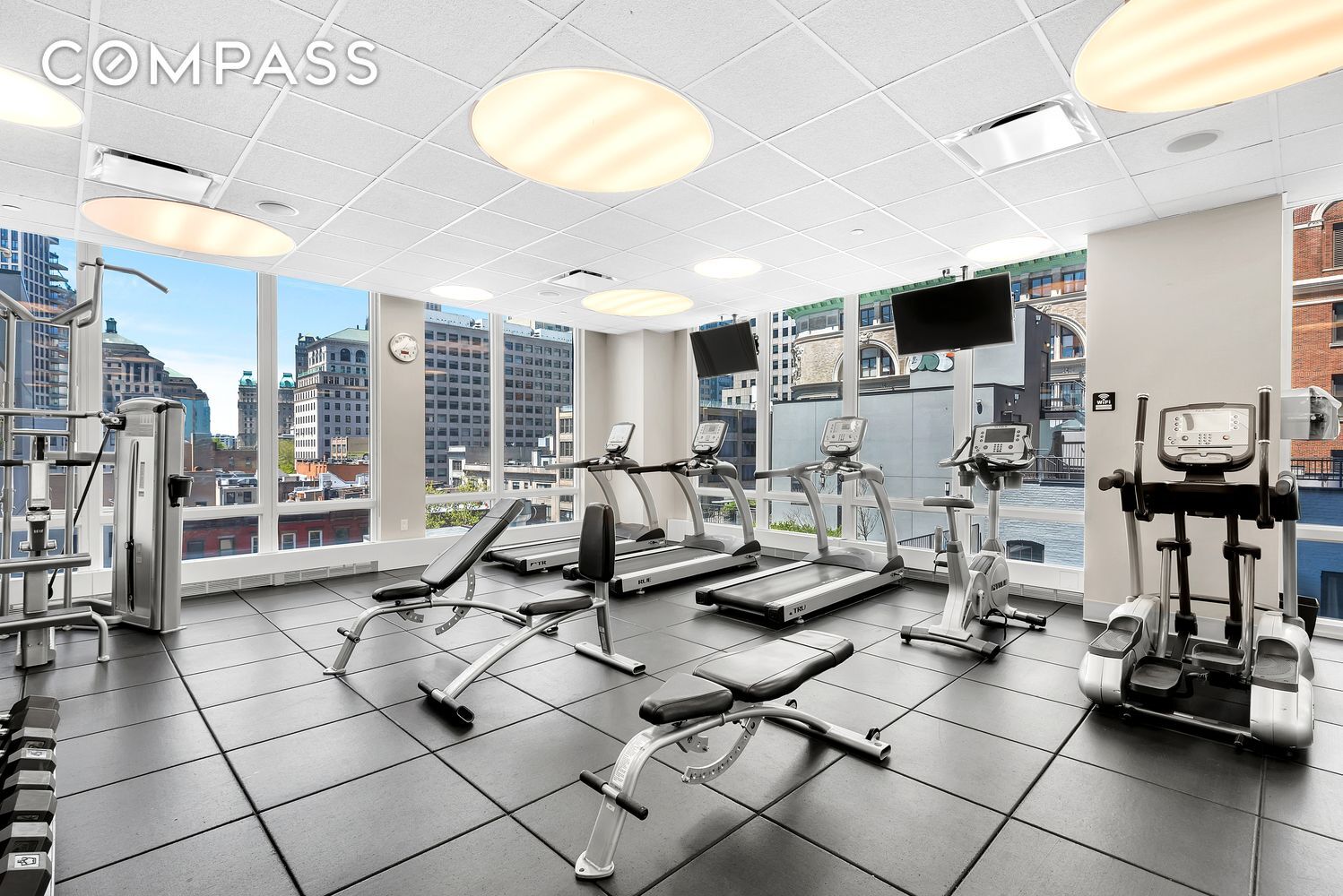 Building Amenities: 388 Bridge, is a condo-rental hybrid, with 234 rentals and 136 condos from the 32nd floor up. Upon entering, you will be impressed by an elegant, yet understated, fully-attended lobby with 24-hour doorman and concierge services. A live-in superintendent and a full building support staff ensure a high level of service. Optional valet parking is available through a private entrance for building residents. Building valet service is also available for package deliveries at no extra cost. The 5th floor houses a state-of-the-art gym, a lounge room with a separate pantry and service kitchenette, a children’s playroom, and an expansive 5000 square foot terrace with barbecue grills and an outdoor children’s play area. The relaxing 46th floor Sky Lounge offers a billiard table, a fireplace, and separate lounging areas. From the 54th floor rooftop viewing terrace, you can watch the beauty of the New York Harbor while barbecuing your favorite meal. Lastly, the cellar level provides a pet spa with a bathtub for your furry friend's favorite time, bicycle storage at an extra fee, and a laundry central.