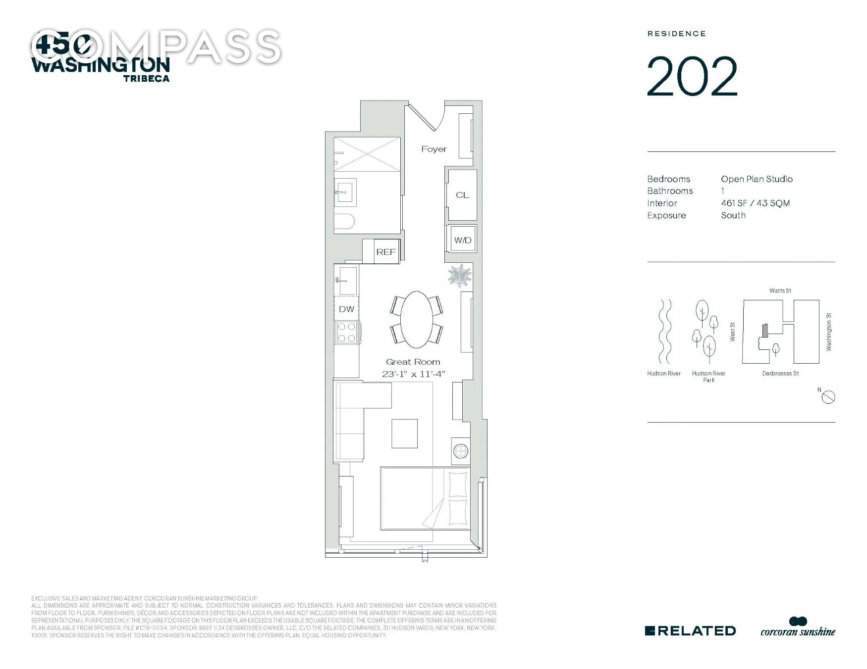 Located along Tribeca's historic waterfront and the spectacular Hudson River Park, 450 Washington by RELATED is a beautiful property with 176 perfectly-detailed residences. Where sun, water and parks meet downtown, 450 Washington features a private landscaped courtyard and fine modern detailing conceived by Roger Ferris + Partners. From Tribeca's historic cobblestone streets, residents arrive at 450 Washington through a gated entryway into an 8,000 square foot courtyard oasis of lush green space by world-renowned landscape architect Hollander Design.