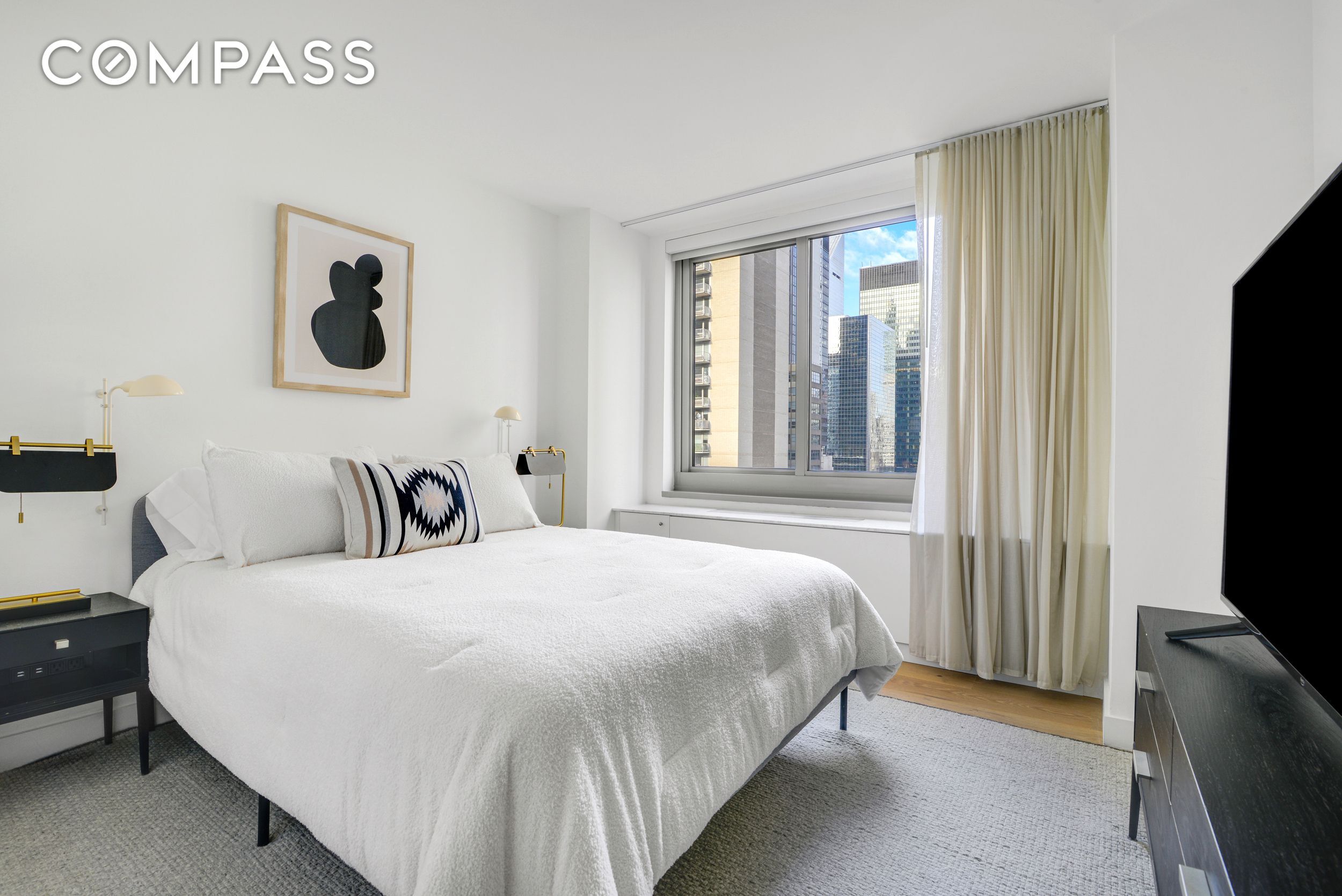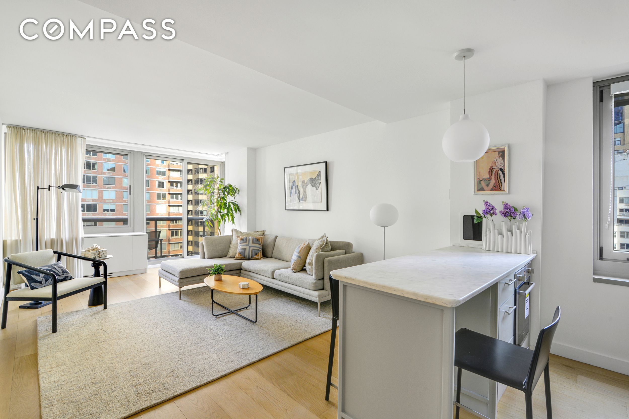 Live above it all in this high-floor, one-bedroom residence with a spacious private balcony and sweeping north and east city views. Sun-filled interiors feature wide-plank white oak floors, oversized windows and glass doors, and an in-unit Bosch washer and dryer for ultimate convenience.