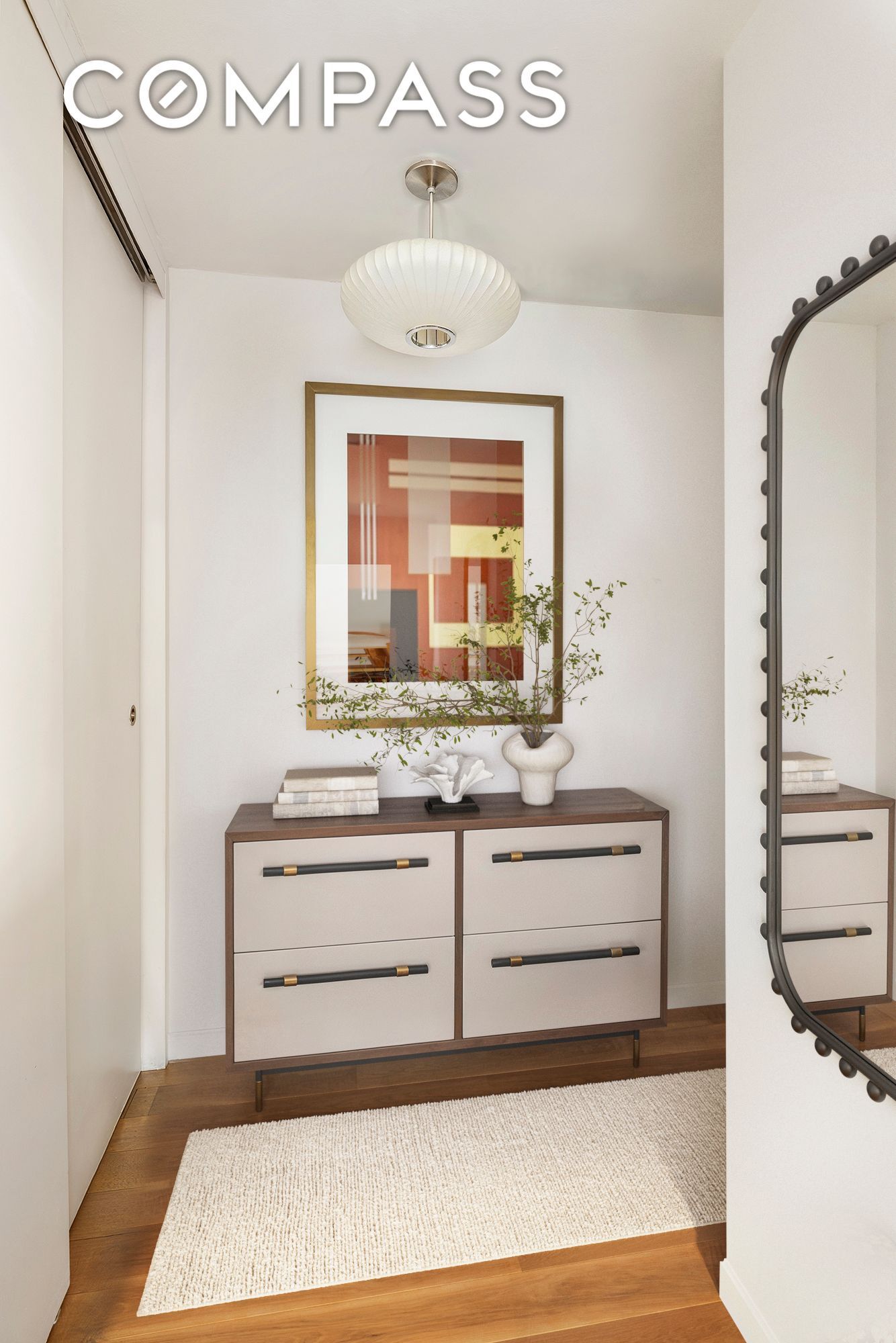 This oversized, sun-flooded corner one-bedroom offers exceptional scale, light, and flexibility. A generous alcove—ideal for formal dining—can seamlessly convert to a refined home office or guest suite. The king-sized bedroom is grand in proportion, bathed in natural light and features a spacious closet with room to spare.