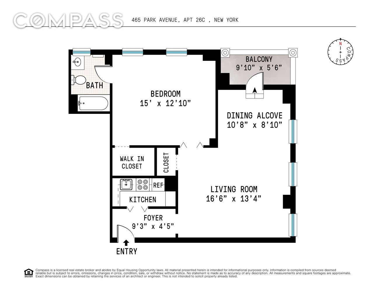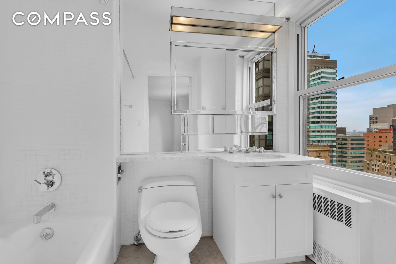 *Lease Subject to Board Approval* Charming and Historic 1 Bedroom with Private Balcony at Ritz Tower Perched on the 26th floor of the legendary Ritz Tower, step into this sunny 1 bedroom with its own private balcony at Emery Roth and Thomas Hastings’ iconic Ritz Tower. Upon entering Residence 26C, you are greeted by a foyer which leads to the kitchenette. The kitchenette features a GE refrigerator, freezer, dishwasher and microwave as well as a Summit stove and oven. To the right of the foyer is the living room with three east-facing windows, herringbone floors, and a dining alcove leading to a small private balcony, large enough to accommodate two chairs and a small side table. The balcony embodies the 1920s during which the tower was built, with regal balustrades and ornately carved pillars - the perfect perch from which to view Midtown Manhattan. The bedroom is located just off the living room, with open city views from two north facing windows and a large walk-in closet as well as an en-suite bathroom with marble counters and a large, north-facing window. There is also a generous-sized closet to the left of the bedroom entry. Constructed in 1925, this elegant limestone-clad pre-war cooperative was designed by Emery Roth and Thomas Hastings. At the time, this 41-story tower was the first tallest residential building in the city. New York City’s apartment building height regulations applied to apartments with individual kitchens, which the Ritz did not offer. This meant that the Tower could be built much higher than any of its contemporary residential buildings. The Ritz is considered to be a strong symbol of a transition in American architecture, with Hastings and Roth incorporating a strong classical style into a building of ground-breaking height and size. According to Robert A. M. Stern, Gregory Gilmartin and Thomas Mellins, the Ritz Tower “was intended from the beginning to be the apogee of urban living.” Situated on the northeast corner at 57th Street, this landmarked building offers unrivaled five-star white-glove service, daily maid service, a full time doorman, concierge, valet service, a newly renovated fitness center, conference/party room, and live-in superintendent. Owners are welcome to lunch and dinner served in their private home prepared by the Ritz Tower’s exclusive Chef, available 5 days a week. The Ritz Tower is located in close proximity to Central Park, Madison Avenue boutique shops, Bloomingdales and many of New York City’s fine dining restaurants such as The Polo Bar, Avra Madison Estiatorio and Daniel.