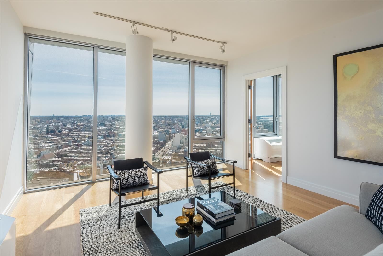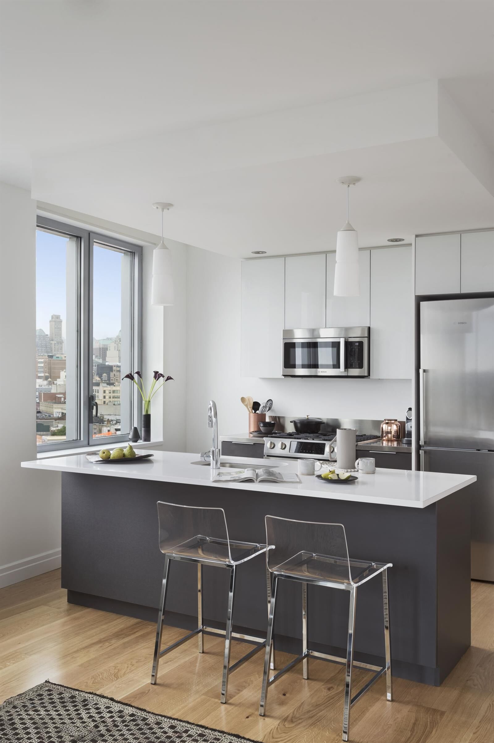 Now offering $1,300 move in credit!! Oversized high floor corner 1 BR/1BA with majestic South and West water views, walk-in closet, large closet, kitchen w/ Island, washer/dryer. No Fee!! RENT STABILIZED APARTMENT!! Unit features white oak hardwood floors, Bosch washer/dryer, stainless steel Bosch kitchen appliances, stainless steel countertops, custom closet shelving and finishes, solar shades throughout apartment, in-sink garbage disposals, Hans Grohe bathroom fixtures, keyless electronic apartment access, LED energy efficient track lighting, Corian window sills, large ceiling-height windows offering great natural light and sunset views of New York Harbor. Building Overview: 300 Ashland offers all the amenities and convenience of a modern building alongside the vibrancy and culture of classic Fort Greene, Brooklyn. Our Studio, 1 Bedroom and 2 Bedroom residences were thoughtfully designed with high-end finishes, panoramic views, and full-service resident amenities atop diverse cultural programming. The first nine floors of our building include BAM cinema theaters, a branch of the Brooklyn Public Library, MoCADA, 651 ARTS, a 365 Whole Foods and Apple store. With 11 subway lines just steps outside your door, 300 Ashland is truly UNLIKE ANYTHING, IN THE MIDDLE OF EVERYTHING! Building Amenities include: • 24 Hour state of the art Gym with studio offering a variety of classes • Outdoor Roof Deck designed by James Corner Field Operations, same designers as The High Line • BBQ Grill Station • Resident Lounge with work-from-home space and WiFi throughout • Valet Services with Cold Storage • Parking Garage in Building • Keyless electronic apartment access • Bicycle Room • Stroller Parking • 24 Hour Front Desk Concierge * Listed rent is net effective rent, based on a gross rent of $5106.86 and 0.26 Months Free