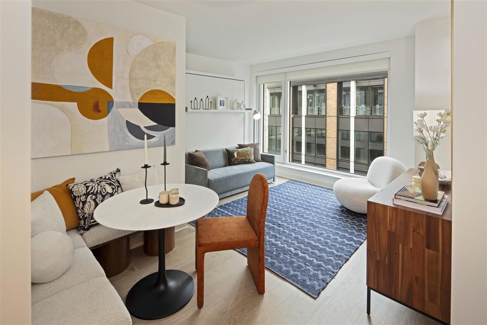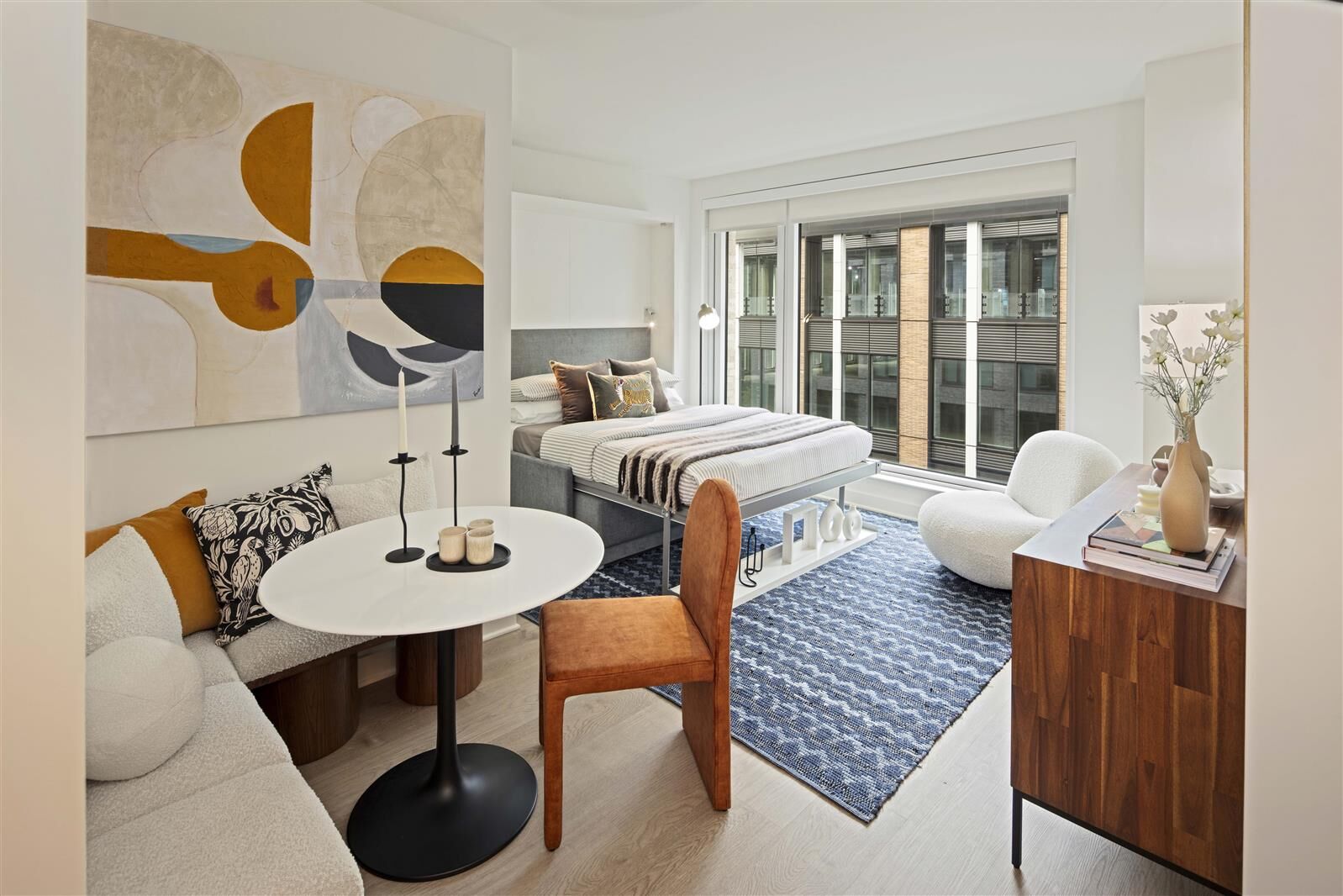 The Suffolk is a new, full-service luxury rental building that is eclectic yet refined, elevated yet grounded, always with new moments and hidden gems to discover. Designed by Dattner Architects and JG Neukomm Architecture, The Suffolk embraces and enhances the cultural symphony that is the Lower East Side. Discover studio to two-bedroom residences, along with a collection of Abode by Gotham homes featuring built-in, multifunctional furniture. A thoughtfully curated amenity package features a rooftop pool, BBQs, a state-of-the-art fitness club, resident and co-working lounges and more, and is complemented by luxurious extras, including a package room with cold storage, resident event programming, and an exclusive resident mobile app. The Suffolk is located off Broome Street in the heart of the Lower East Side with access to an array of exciting dining and shopping options including Essex Market, Target and Trader Joes. Nearby transit includes the F, M, J, and Z lines from the Delancey Street/Essex Street subway station three minutes away, and the M15, M9 and M14A-SBS bus lines, with easy access to the Williamsburg Bridge. Building Amenities: 24-hour Attended Lobby Personal Concierge Services Rooftop Pool & Sundeck* BBQs & Private Dining Terrace* State-of-the-art Fitness Club & Yoga Studio* Firepits & Lounge Seating* Resident & Co-working Lounges* Conference Rooms & Work Pods* Game Room* Package Room with Cold Storage Resident Event Programming* Exclusive Resident Mobile App Pet Friendly Demonstration Kitchen* Zen Garden Common Laundry Room Resident Storage* Bicycle Storage Gotham Card Perks *Additional Fees Apply Residence Features: Designed by JG Neukomm Architecture Luxury Plank Flooring Complimentary Window Treatments Smart Lock Entry In-residence Washer & Dryer Floor-to-ceiling Windows Northern Exposure Kitchen: Blomberg Stainless Steel Appliances Paneled Refrigerator & Dishwasher Full-height Tiled Backsplash Polished Chrome Kohler Fixtures Soft-close Cabinetry Quartz Countertops Bath: Quartz Countertops Custom Porcelain Tile Floors Full-height Tiled Walls Polished Chrome Kohler Fixtures Soft-close Cabinetry Custom Vanity Mirror 3D tour, video and photos are for illustrative purposes only and may not reflect the exact apartment. REQUIRED FEES: Application Fee: $20 per person (non-refundable) Lease Signing: First months rent and one months security deposit due upon application approval. Reduced Security Deposit of $1,000 to qualifying applicants Moving Fees: None Broker Fee: None MONTHLY FEES: Utilities: Tenants are responsible for electricity, cable, and internet (based on usage) Included: Cooking gas, heat, and hot water OPTIONAL MONTHLY ADD-ONS: Amenity Fee: $100/month (includes events and programming as well) Pool Fee: $500 per person per season Extra Storage: $100-$150/month Bike Storage: No additional fee Pet Policy: Pets are welcome no additional pet fee