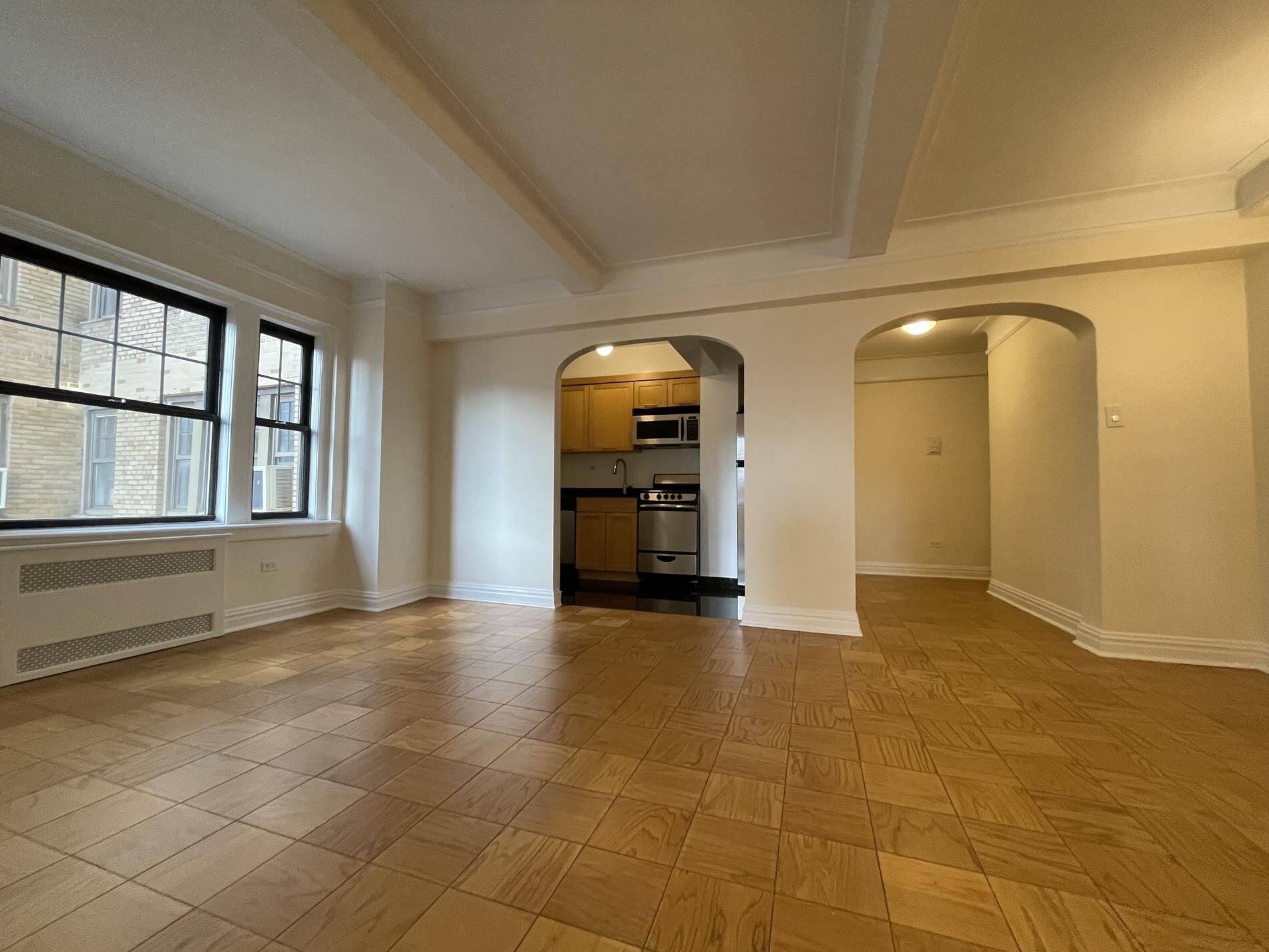 Modern Elegance in the Heart of Manhattan Discover refined city living in this elegant 1-bedroom, 1-bathroom corner unit, perfectly situated in a highly sought-after building. Offering both style and function, this residence boasts timeless hardwood floors, high ceilings, and oversized windows that frame breathtaking city views with coveted southern exposure. Step through the welcoming foyer and into the formal dining area, an ideal space to entertain or enjoy peaceful evenings at home. The windowed kitchen features stainless steel appliances, a sleek dishwasher, and abundant storage, creating a harmonious blend of functionality and sophistication. This unit is located in a meticulously maintained building with premier amenities to elevate your lifestyle. Enjoy the peace of mind of a full-time doorman and the convenience of on-site laundry, an elevator, and a gym. Garage and parking spaces are included, while utilities are thoughtfully covered for added ease. Whether you're savoring the tranquility of your private corner unit or indulging in the building’s amenities, you’ll love coming home to this mid-to-high-rise escape. This space is offered unfurnished and is ready to match your personal style. For more details or to schedule a showing, please contact Cristian Castro at 646-399-0456 or via email at cristian.castro@compass.com. Don’t miss this opportunity to experience elevated Manhattan living!
