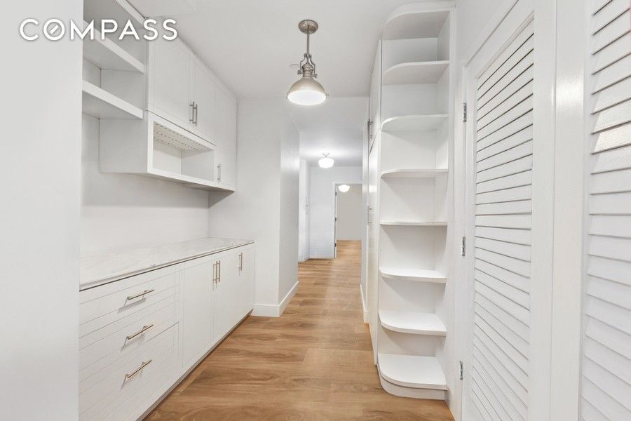The king-sized primary suite is a quiet sanctuary, offering three oversized windows—one framing a postcard-worthy view of the Midtown Manhattan skyline. The suite includes an oversized walk-in dressing room, as well as a private ante room currently used as a cozy den. Two additional bedrooms are generously sized, while thoughtful upgrades throughout include custom storage, soundproof CityQuiet windows with remote activated shades, central HVAC (no clunky PTACs), an in-unit washer/dryer, and an oversized deeded storage unit.