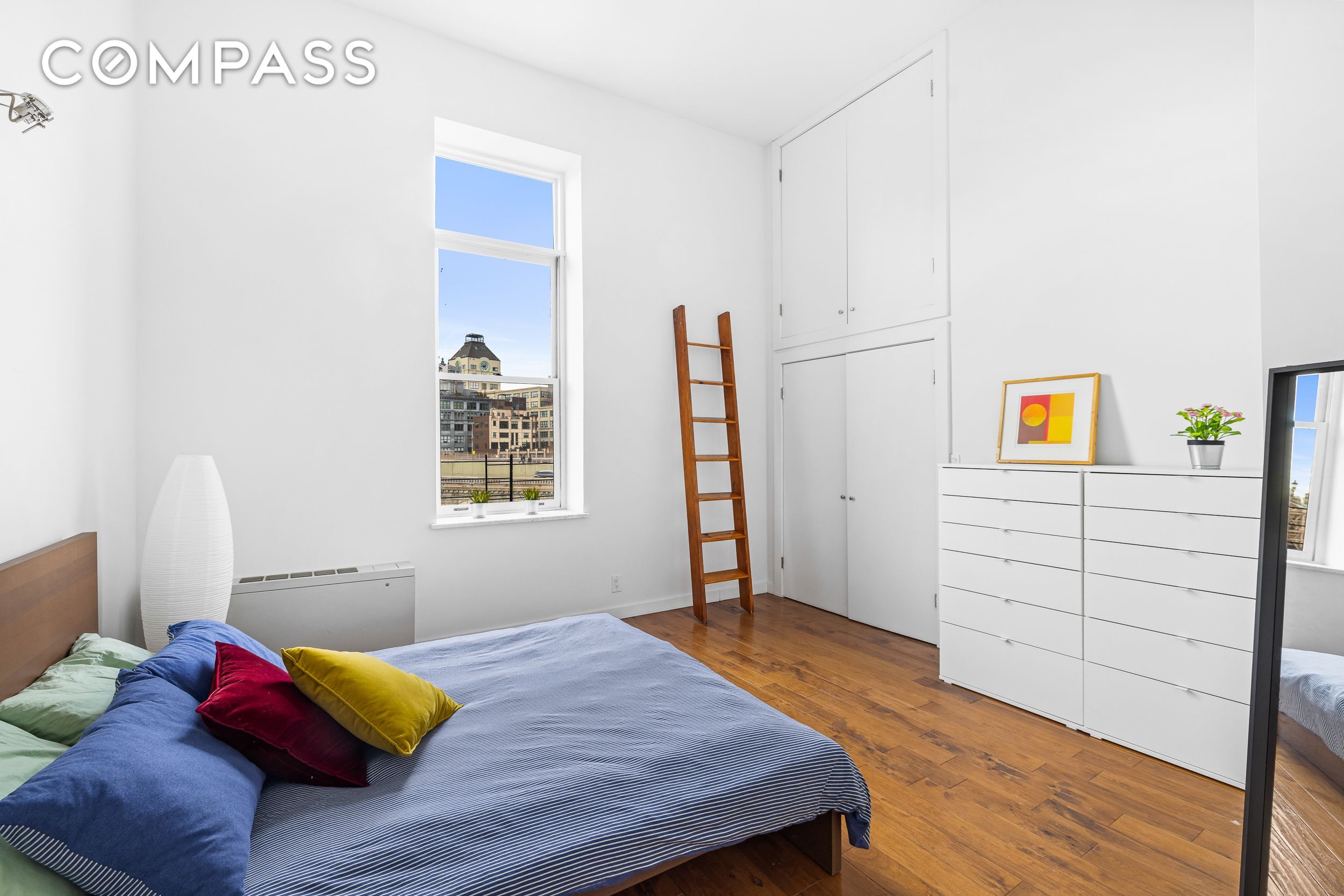 Stunning Brooklyn Bridge and East River views surround you in this Brooklyn Heights loft-style apartment! This dramatic home features soaring 13' ceilings, open kitchen with sleek contemporary finishes, premium countertops & stainless steel appliances, stylish bathroom, hardwood floors, bright northern and western exposures with bridge and river views (!) through oversized windows and a WASHER & DRYER in the apartment! The unique duplex layout is ideally suited for modern living, with a gracious living room, dining area, roomy master bedroom and separate loft space, perfect for use as home office, second sleeping area or storage space. Additional basement storage included. PLEASE NOTE: Square footage includes loft space with 4' 9" ceiling height.