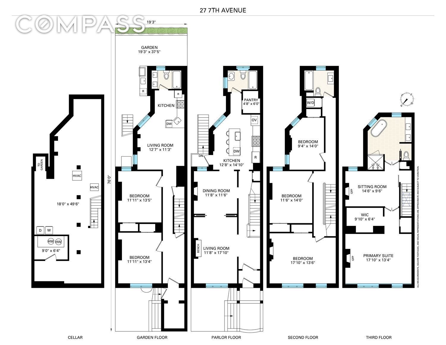 History without any hassle. This breathtaking, landmarked 1887 Romanesque Revival townhouse has been completely overhauled, all located in an ideal spot in Park Slope with easy access to everything. Originally overhauled by Brooklyn Home Company several years ago and upgraded by its current owner, this grand four-story plus cellar residence seamlessly blends historic character with elevated and tasteful contemporary design. Configured as a two-family and easily convertible to a spectacular single-family home, this expansive property offers exceptional flexibility for any need. The upper triplex is a showcase of preserved craftsmanship and refined details. Original millwork, plaster moldings, generous ceiling heights, and a stunning pier mirror anchor the elegant parlor level. A formal dining room with a unique decorative marble and brass fireplace flows into the sandblasted chef’s kitchen, outfitted with Calacatta Gold marble, a six-burner Wolf range with commercial-grade hood, paneled Sub-Zero refrigerator, and a generous walk-in pantry. Just beyond, a beautifully landscaped bluestone garden creates a seamless indoor-outdoor living experience, complete with a built-in grill, refrigerator, sink, and planting beds. Upstairs, the second level offers two sizable bedrooms, a windowed marble bath with tub, and a sophisticated oversized room with stunning details, ideal as a media lounge, home office, or additional bedroom. The top floor is dedicated to a dramatic full-level primary suite featuring soaring beamed ceilings, arched windows, a gas fireplace, an expansive walk-in closet, and a separate den or office with its own fireplace. The spa-like en-suite bath is a true retreat, appointed with a soaking tub and luxurious multi-head rain shower. The garden level includes a fully renovated two-bedroom apartment — perfect for rental income, multi-generational living, or seamless integration into a single-family layout. A finished basement provides excellent storage and additional utility space. Additional highlights include central air conditioning, updated interiors, restored woodwork, five fireplaces, and high-end appliances throughout. Ideally located just moments from Prospect Park and Grand Army Plaza, and surrounded by acclaimed dining, shopping, and neighborhood amenities. Convenient access to the B/Q and 2/3/4 subway lines completes the offering.