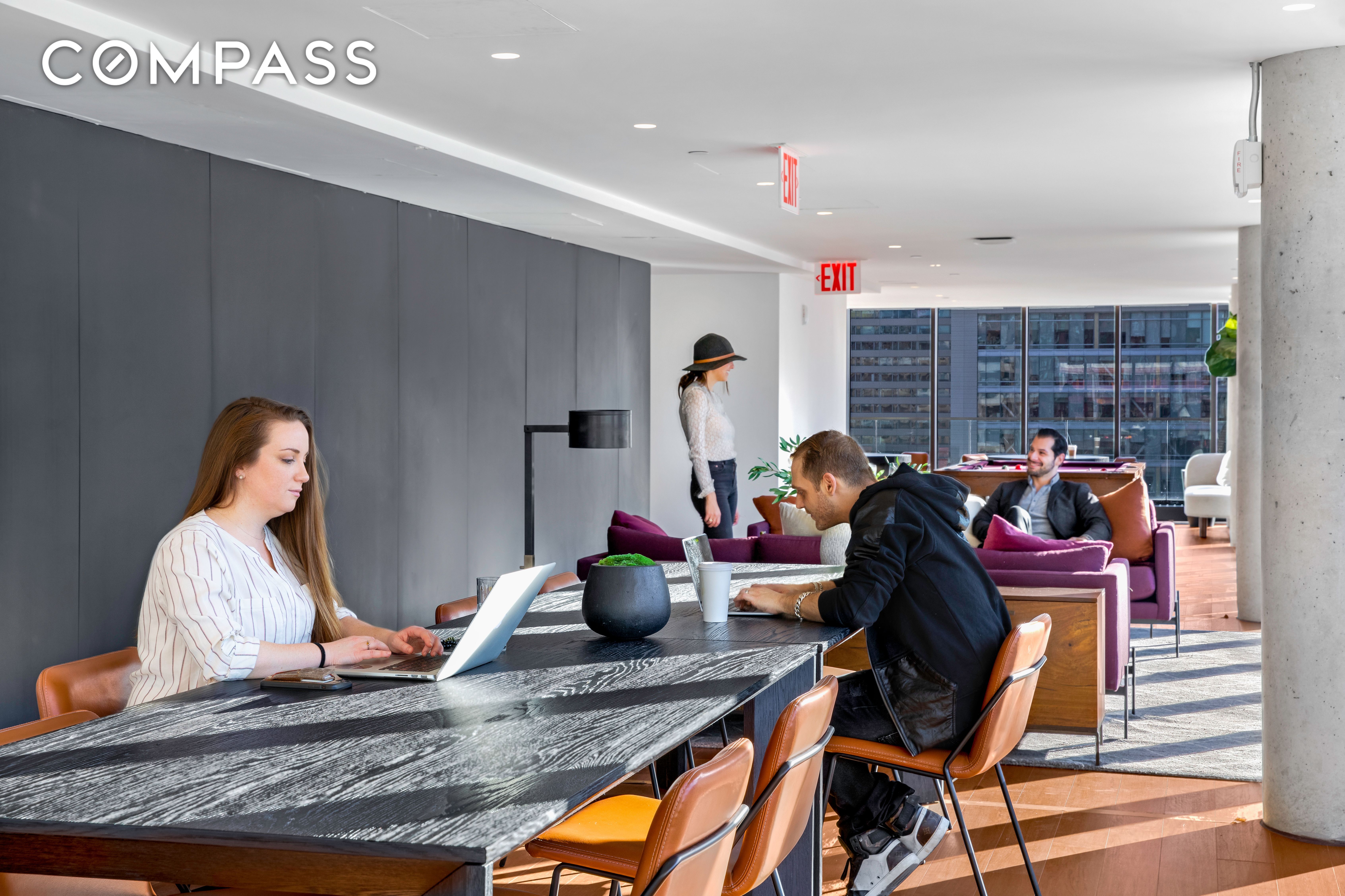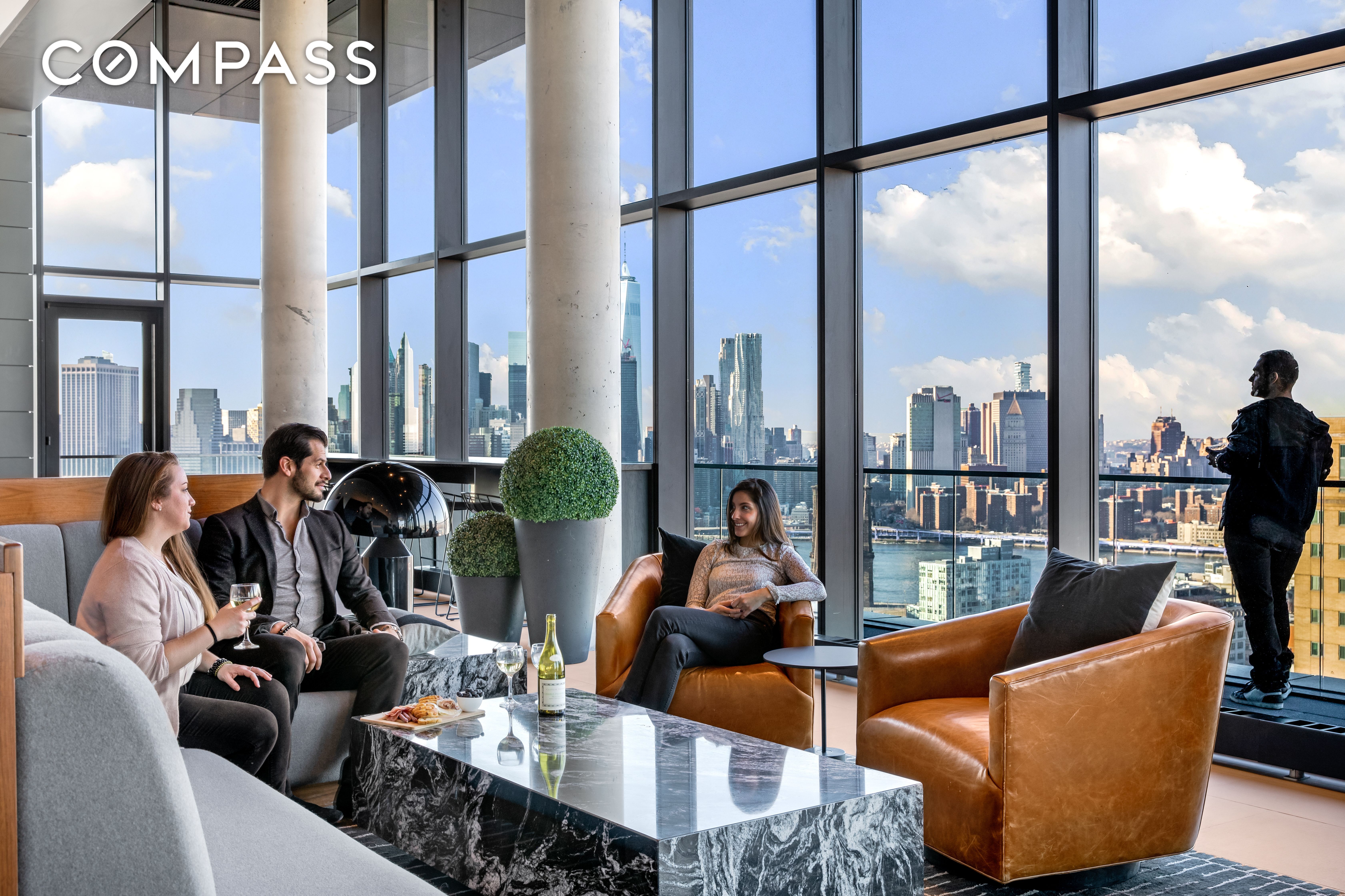 Building amenities include a ground-floor live/work lounge with access to a communal plaza designed by Scape Architects. The state-of-the-art fitness center features equipment by Life Fitness and Peloton. On the 9th floor is The Amberly's lifestyle lounge, wraparound sundeck and outdoor grilling and dining areas. The Overlook, a 33rd-floor sky lounge offers sweeping views of the Manhattan skyline, Brooklyn rooftops and the iconic New York Harbor. Bike storage and below-grade valet parking are also available.