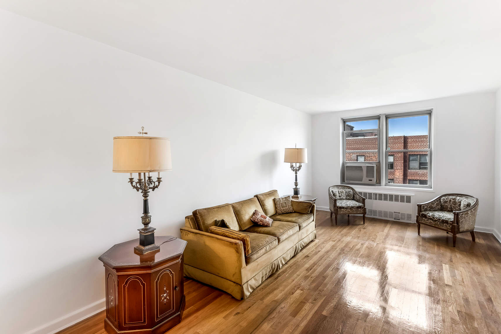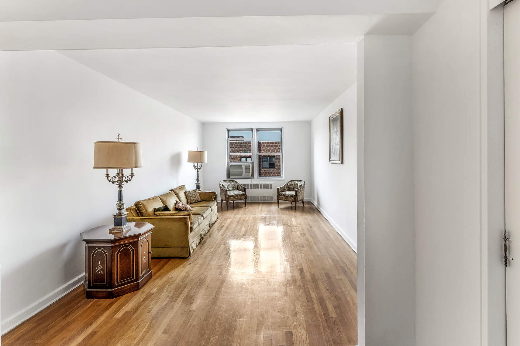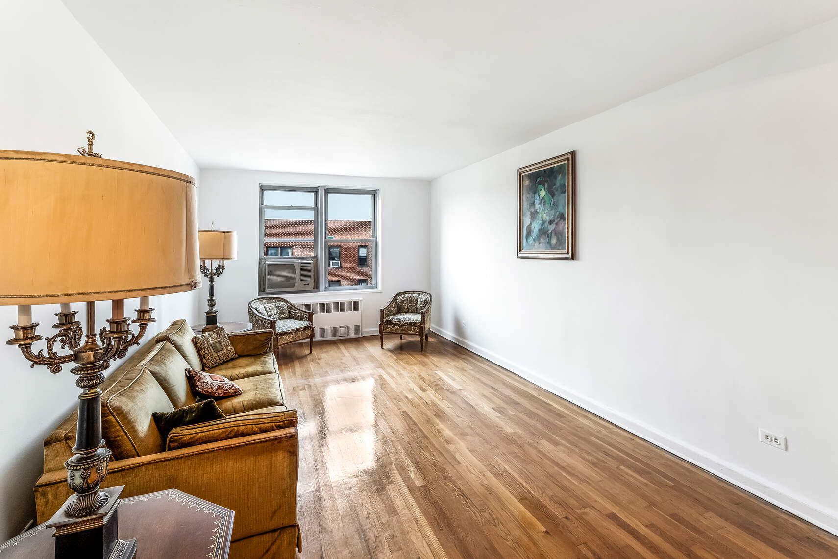 Affordability at its best! This top floor corner Two Bedroom Coop apartment with 1 ½ baths is making its debut after 61 years of ownership from the same family that first purchased it from the builder! Featuring a huge eat-in-kitchen, a defined dining area, large living room, and two spacious bedrooms. The corner apartment faces south and west, and shares only one wall with the neighboring apartment. The base maintenance of $824 is inclusive of electricity, gas, taxes, heat, and water. The Coop has stellar financial statements; it offers a full gym, a playroom, a party room, a lounge/library, indoor bike rack, and 24 hour laundry facilities. There is an attentive staff of six, which are on premises for 24/7 emergencies. Outside you will find four beautifully maintained courtyards and gardens, a private playground, and much more. 20% down is required as is board approval. Subletting is not allowed but small pets are. Transportation is a breeze with the subway being a few minutes away. Great shopping, parks, and schools are all with walking distance. Make this amazing apartment your next home!