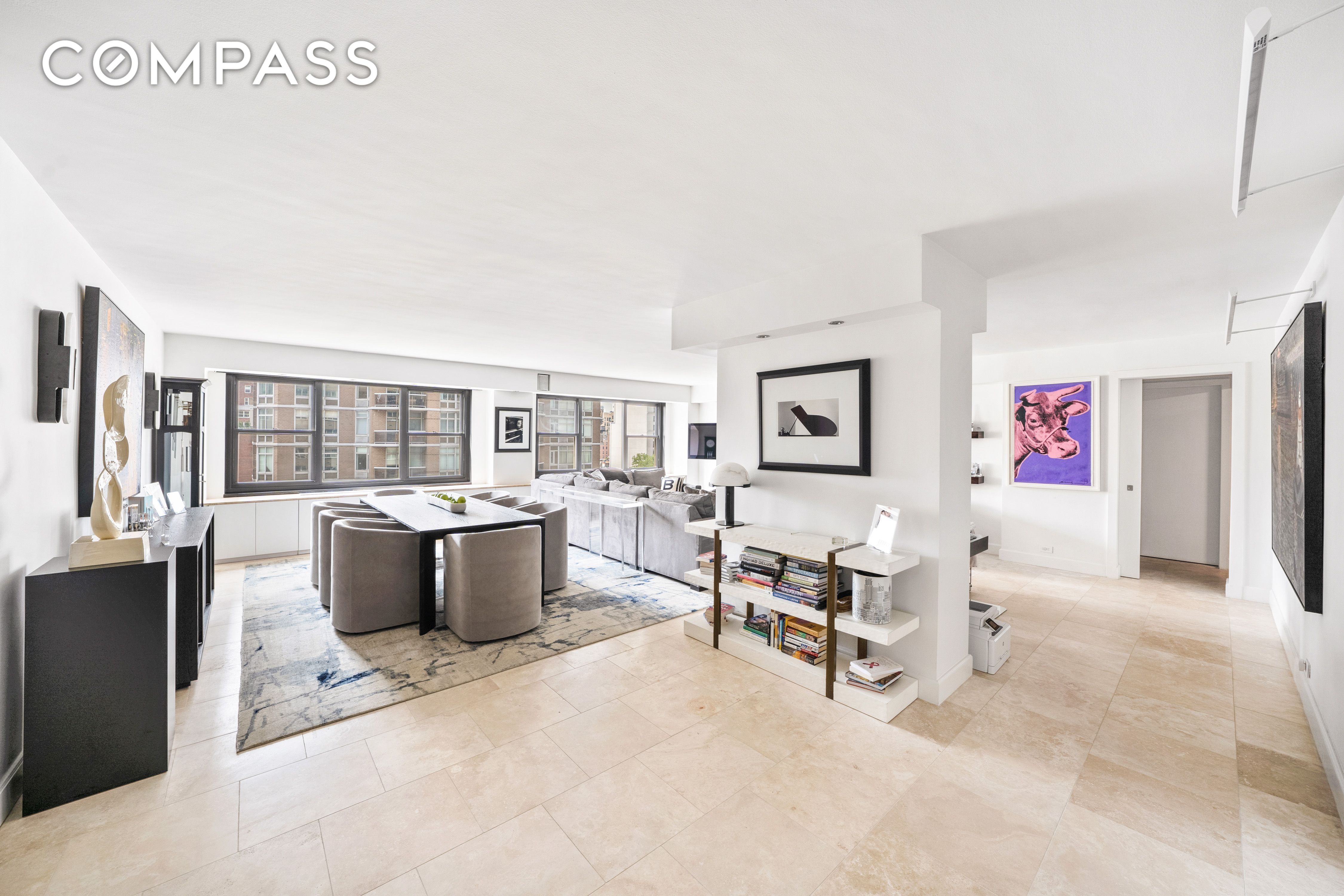 Enjoy spectacular city views and luxurious finishes in this sprawling three bedroom (currently configured as a two bedroom, see floor plans), two-bathroom co-op home in the perfect Lenox Hill location.