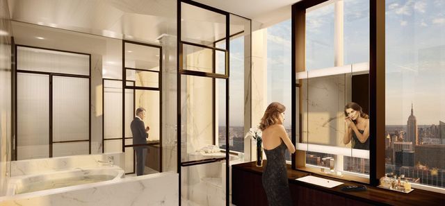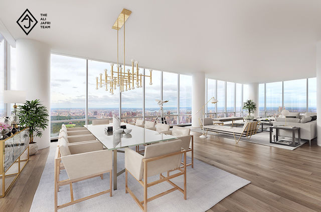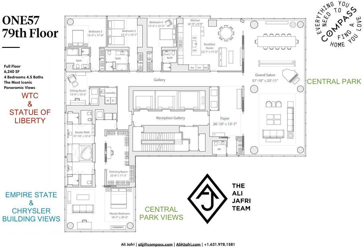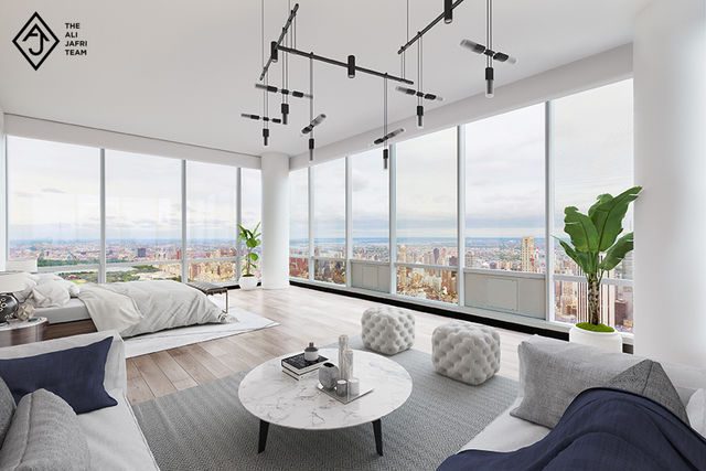 A once in a lifetime opportunity to enjoy a full floor residence at Manhattan's New Crown Jewel, One 57 Condominium! Heralded as NYCs most prestigious address, One 57 was designed by world renowned and Pritzker Prize winning architect Christian de Portzampar. Located in the heart of the city on the premier 57th street corridor, this new iconic tower sits steps away from Central Park and the most celebrated cultural and entertainment venues, restaurants and exclusive shopping in the world. Soaring above Manhattan, this Full Floor Residence truly defines a new era of luxury living in New York. The mesmerizing 360 degree views of Central Park, the Hudson and East Rivers, Long Island Sound, the Empire State Building, the Atlantic Ocean and the Statue of Liberty, form the backdrop of this one of a kind home. The Grand Salon with a ceiling height of 11'8 measures nearly 58 by 26 feet, creating an exquisite platform from which to experience ONE57's signature South to North view of all 843 acres of the world's most renowned park. With equally majestic views, the Master Suite encompasses the entire eastern wing of the residence and includes a 23 foot dressing room, Dual Grand Master Bathrooms with custom designed floating vanities by Thomas Juul Hansen, an adjoining wet room with steam shower, under mount jacuzzi soaking tub, custom wood vanity with under mount sink topped by Nero Voda marble, recessed medicine cabinets, radiant heat floors and walls of Italian Statuario marble slab and Dornbracht / Graff fittings and fixtures. bedrooms two, three and four all offer ensuite baths with custom vanity, undermount sink topped with white quartzite, recessed medicine cabinets, Bianco Dolomite marble floors and walls, and Dornbracht/ Graff fittings and fixtures. A separate powder room off the entry foyer has a vanity clad in polished black granite with a black glass top, integrated sink, Dornbracht faucet and white onyx slab floors and walls. A fabulous Chef's windowed center island kitchen is complete with breakfast/ family room and is beautifully appointed with Diamond Fall granite countertops & back splash, under-mount sink with disposal, Dornbracht faucet, exterior vented exhaust hood and fully integrated professional appliances by Miele and Subzero. A state of the art, multi zone climate control system via discreetly designed vents and linear diffusers offers year round heating and cooling in each room. The central Display Gallery connecting the Grand Salon with a southern facing sitting room creates a dramatic North to South site line corridor. The residence offers 4 Bedrooms, 4.5 Baths, 6,240 SF, including a private elevator gallery that opens into a gracious foyer and leads to the apartments massive 1,500 SF Great Room which faces directly onto Central Park. Other opulent Interior features by Danish designer Thomas Juul-Hansen include: 11' 9" ceiling heights, floor to ceiling sound proof windows, 8 foot tall solid interior doors, oversized moldings/trim and solid rift sawn oak floors and a separate laundry room with full size W/D and sink. Services: One 57 provides an unparalleled level of service including the following amenities: 24 Hour Doorman/Concierge, Private Dining & Function Room, Full Catering Kitchen, Library with Billiards Room and 24 foot Aquarium, Arts & Crafts Atelier Room, Screening and Performance Room, Private Fitness Center and Yoga Studio, Discreet Additional 58th Street Entry, On-Site Parking Garage, Pet Wash Room. In addition, One 57 residents have access to all the services of the Park Hyatt Hotel with direct access by elevator to the Hotel's Triple Height Indoor Swimming Pool, Spa, Steam Rooms, Custom designed Jacuzzi and Spa Portico and fifth floor Bar and Restaurant. To reach the pinnacle of gracious living, the bar has definitely been raised.
