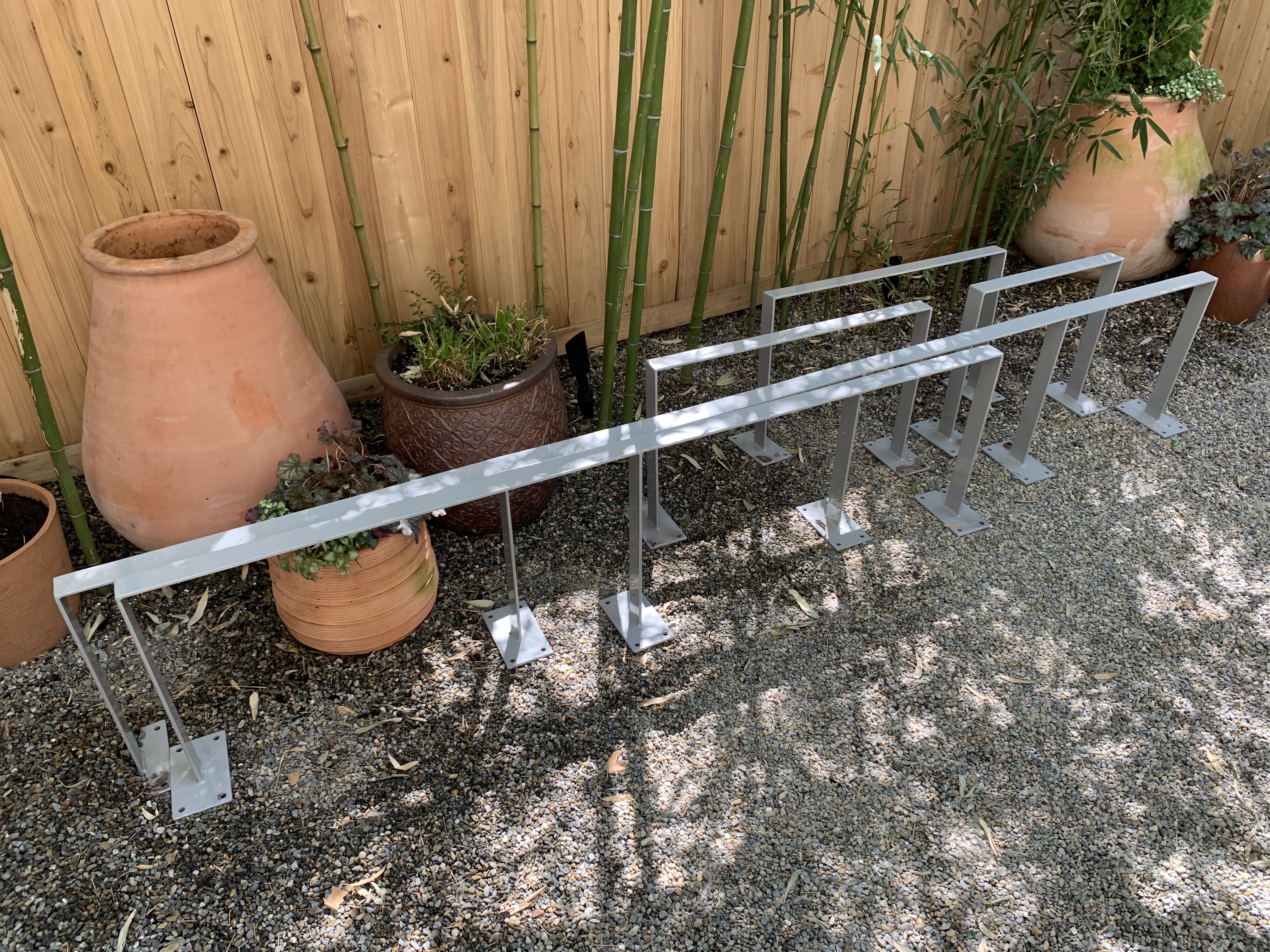 To tame the bamboo, Pulver conceived a solution involving long, horizontal metal braces along the perimeter fence. “We had to go thick, because the bamboo stems are so powerful and strong. To hold it back securely, we needed material that wouldn’t bow out.”