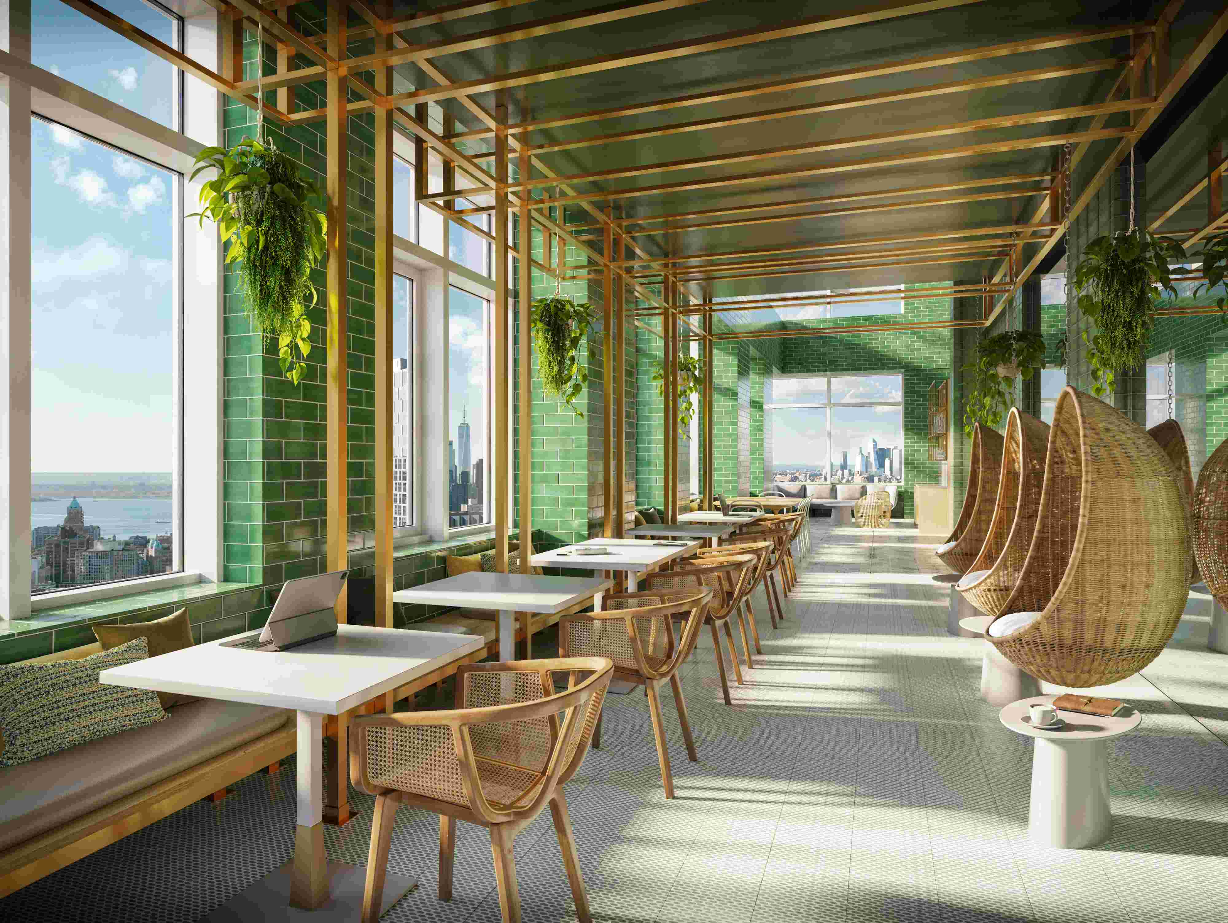 Renderings show the building follows suit with a number of other Downtown Brooklyn builds in that it is narrow, tall, and almost completely covered in glass with metal paneling. The apartment interiors have splashes of color with feature walls, renderings on the development’s site show, while cabinetry is white and grey.